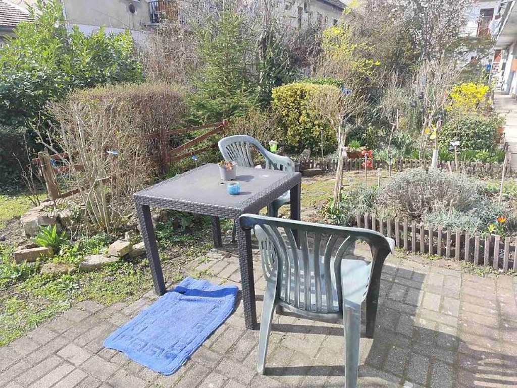 A lakás előtt kb. 5 nm-es terasz helyezkedik el, illetve az udvar végében egy kb. 40 nm-es kertrész.
