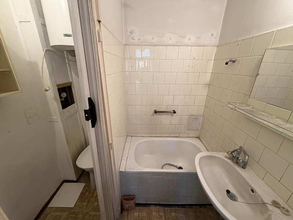 A lakásban eredeti vezetékek és ablakok találhatók. A szobában fa parketta, a többi helyiségeben linóleum van. A fűtésről gázkonvektor, a melegvíz ellátásról villanybojler gondoskodik.
