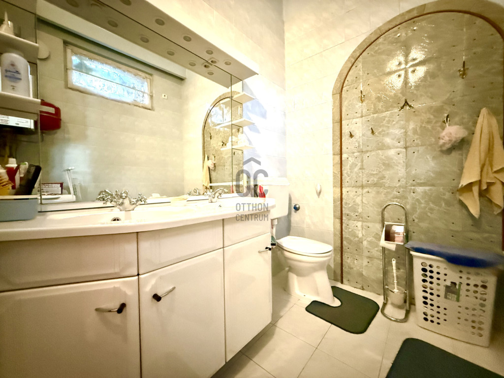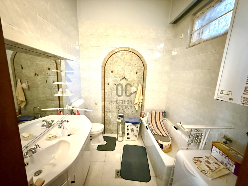 A szobákban szép állapotú fa parketta található, a többi helyiség járólappal burkolt.