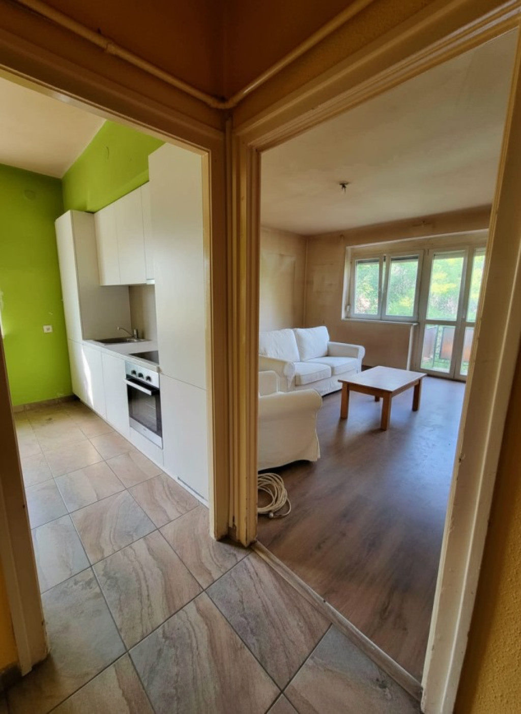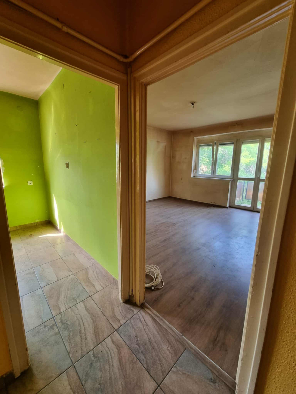 Bár a lakás jelenleg 2 szobás, de kis átépítéssel egy amerikai konyhás nappali és 2 szoba könnyedén kialakítható.
