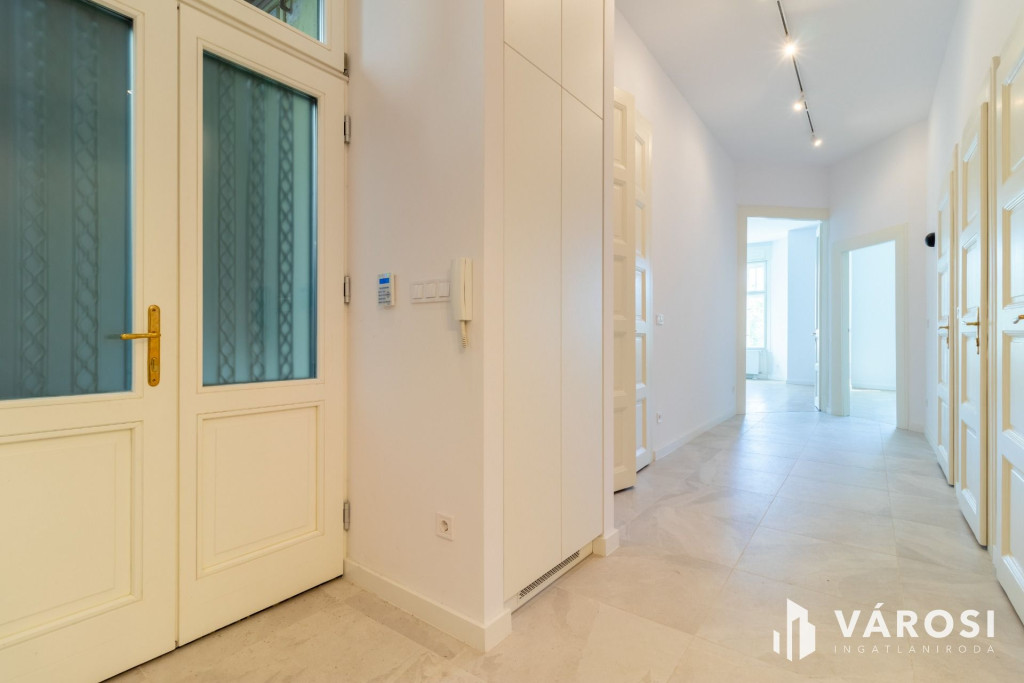 Exkluzív, prémium minőségben felújított nagypolgári lakás a Mester utcábanA IX. kerület egyik legkedveltebb részén, a Mester utcában kínálunk megvételre egy 105 m²-es, 3 szobás, 2. emeleti, liftes társasházban található, 2025-ben teljes körűen, magas műszaki tartalommal felújított nagypolgári tégla lakást.