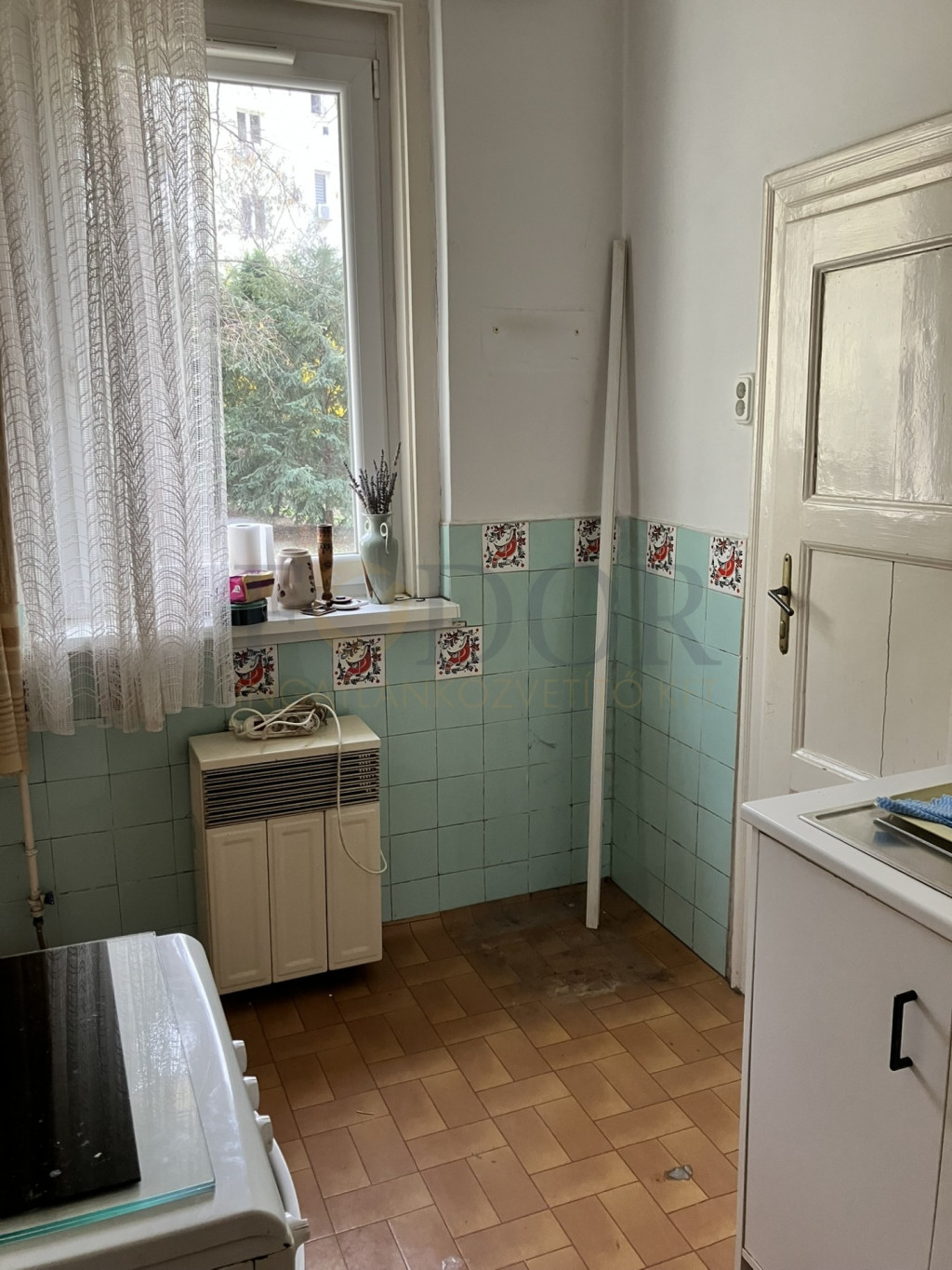 A lakás magasföldszinten helyezkedik el, ablaka csendes, belső udvarra néz, így ideális választás lehet azok számára, akik nyugodt környezetre vágynak a városban.
