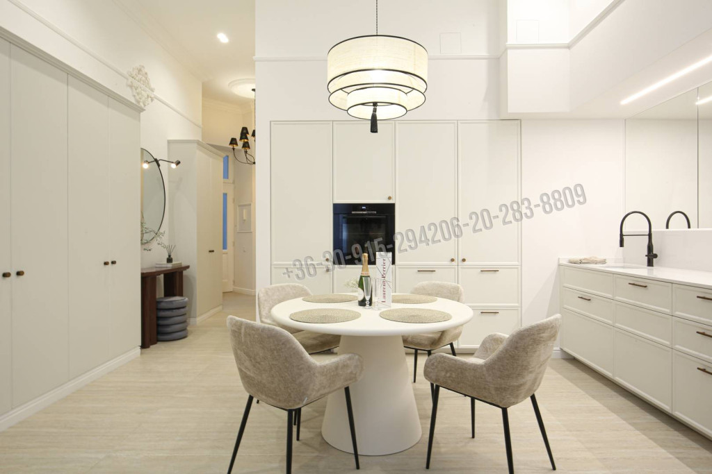A 106 m²-es ingatlan különlegességét a 4 méteres belmagasság, az arányos terek és az a gondosan megtervezett enteriőr adja, amely ötvözi a klasszikus építészeti karaktert a mai, magas szintű komforttal.