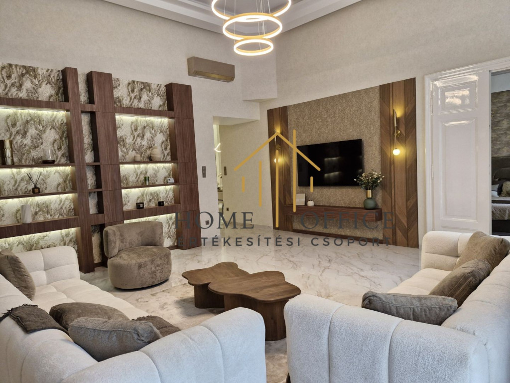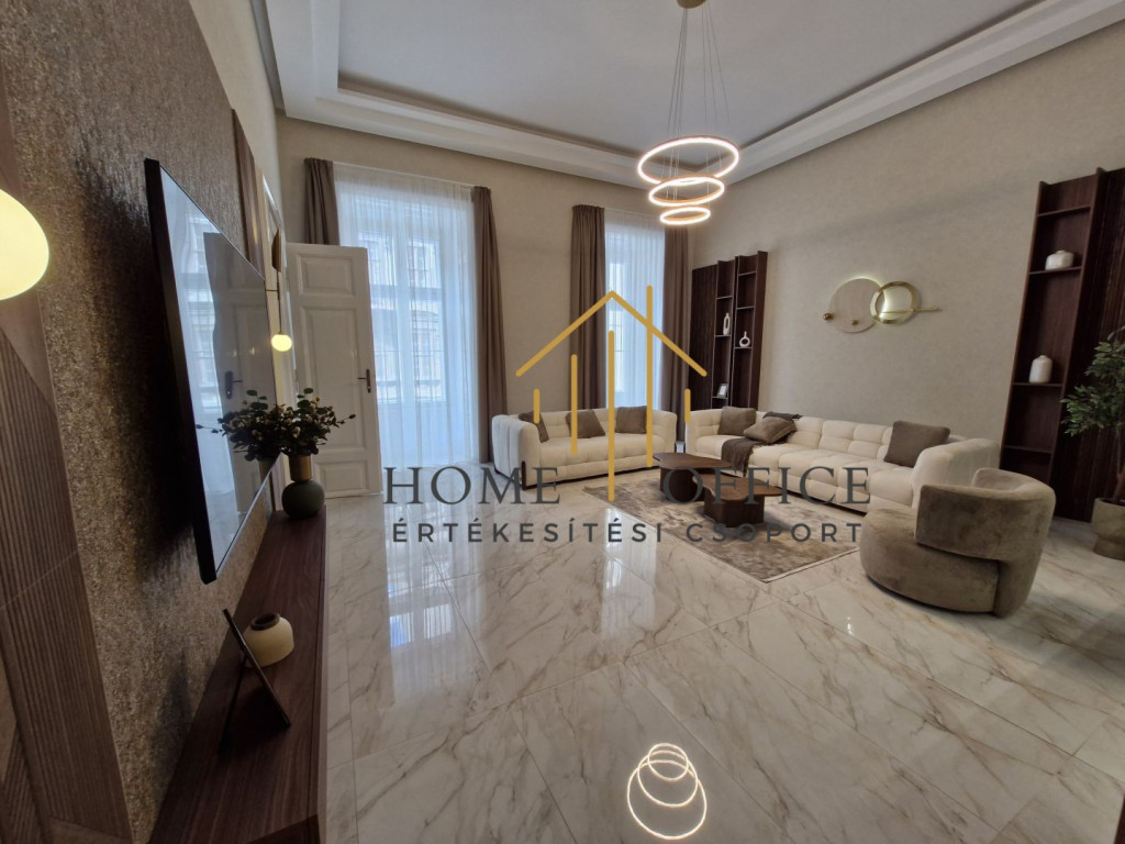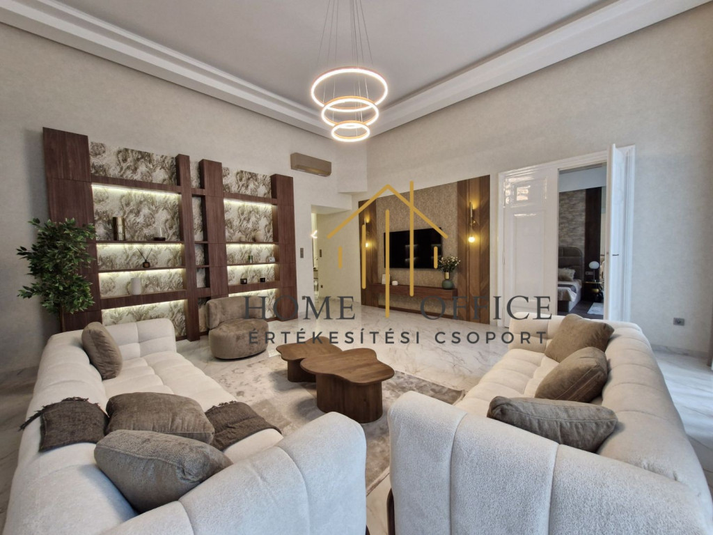 Budapest belvárosában az Október 6.-a utcán, szép, rendezett társasházban, 1. emeleti, 153 nm-es, igényesen, magas minőségben és teljeskörűen felújított lakás eladó!