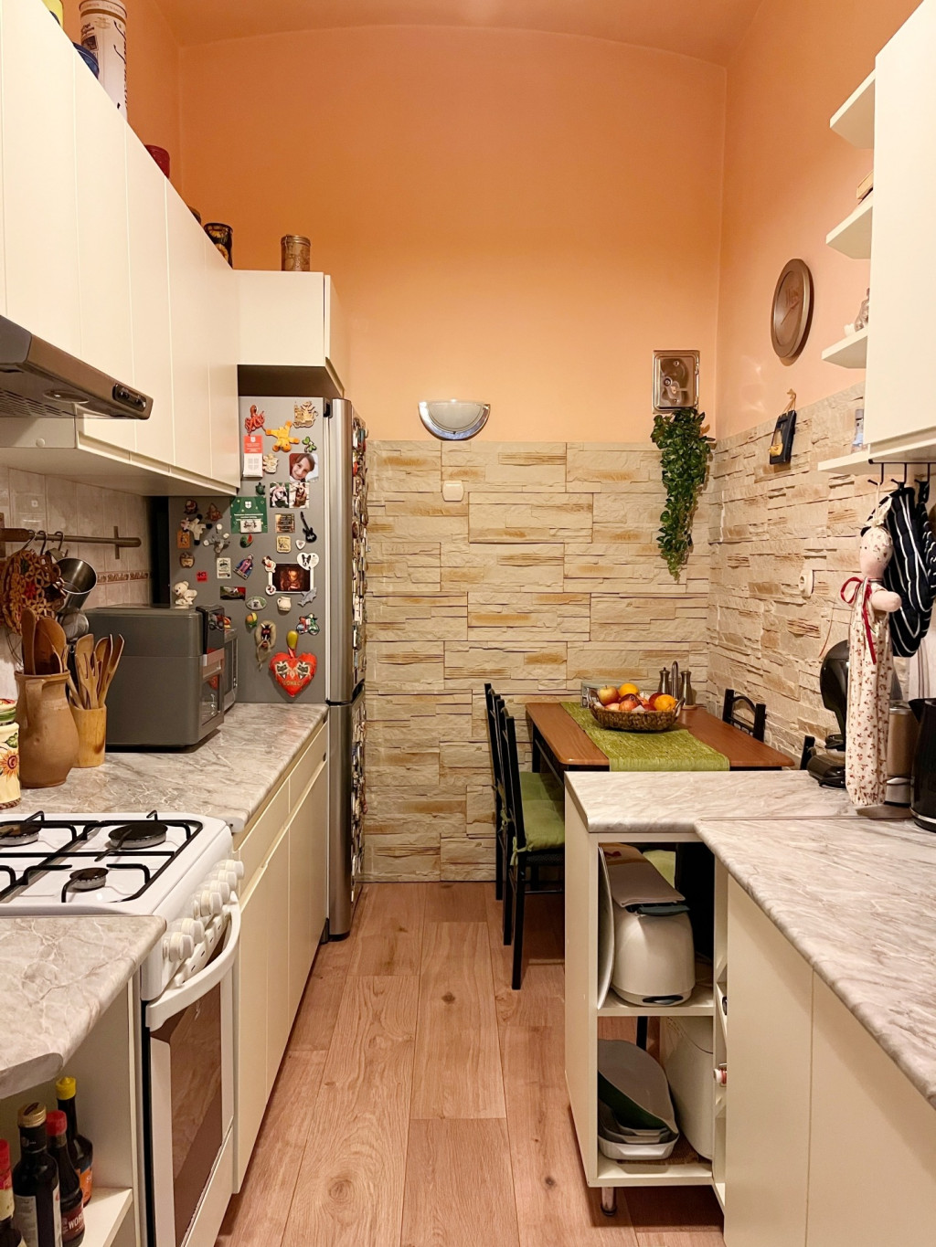 A lakás 2004-ben felújításon esett át, ennek keretében a burkolatok és a parketta cseréje megtörtént, a fürdőszoba kádas, és a WC külön helyiségben található. A 2 félszoba galériázott, ami plusz, jól használható teret ad, a nyílászárók műanyagra cseréltek. A fűtés gázkazánnal, gázcirkó rendszerrel megoldott.