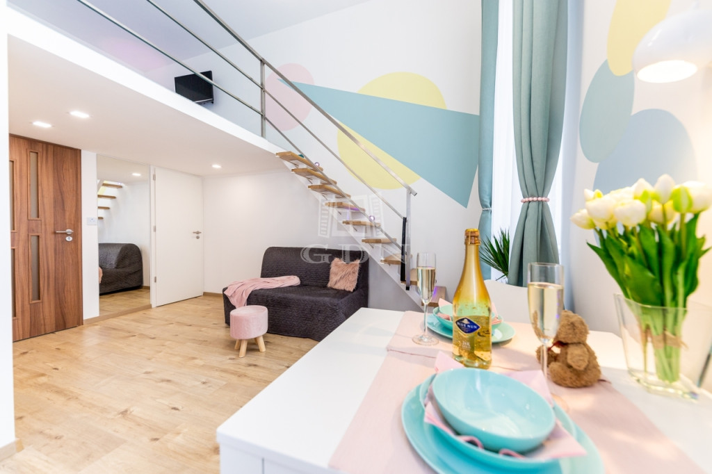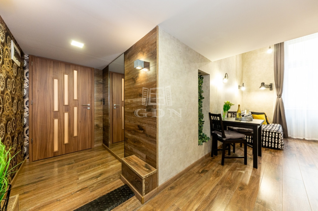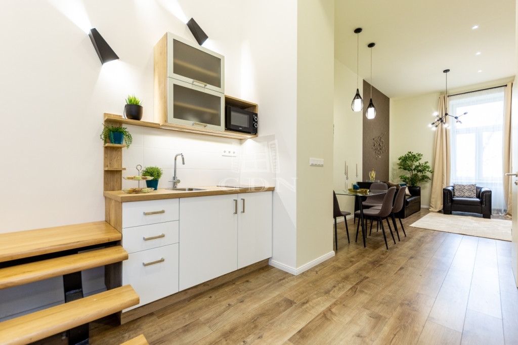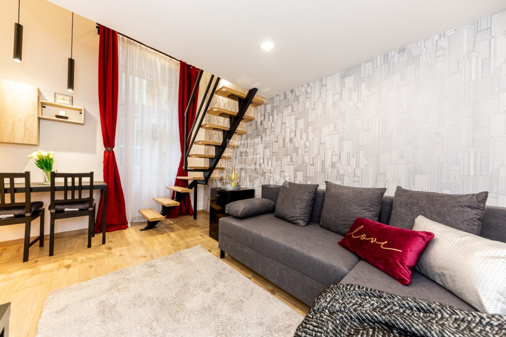 Világos, jó arányú terekkel rendelkezik, a felső emeleti elhelyezkedés és a tájolás ezt kifejezetten erősíti. A ház múltja és karaktere a belváros régi, polgári világát idézi és történelmi és kulturális értéket is hordoz: itt élt Ruttkai Éva Kossuth-díjas és kétszeres Jászai-Mari díjas színésznő!