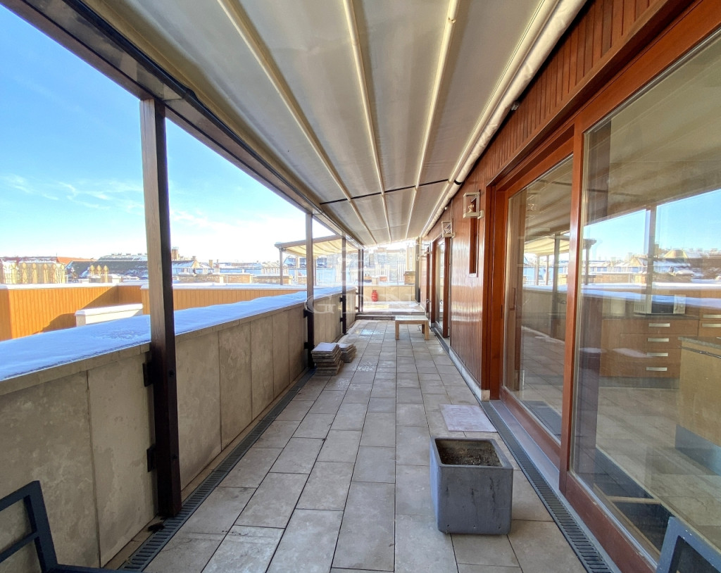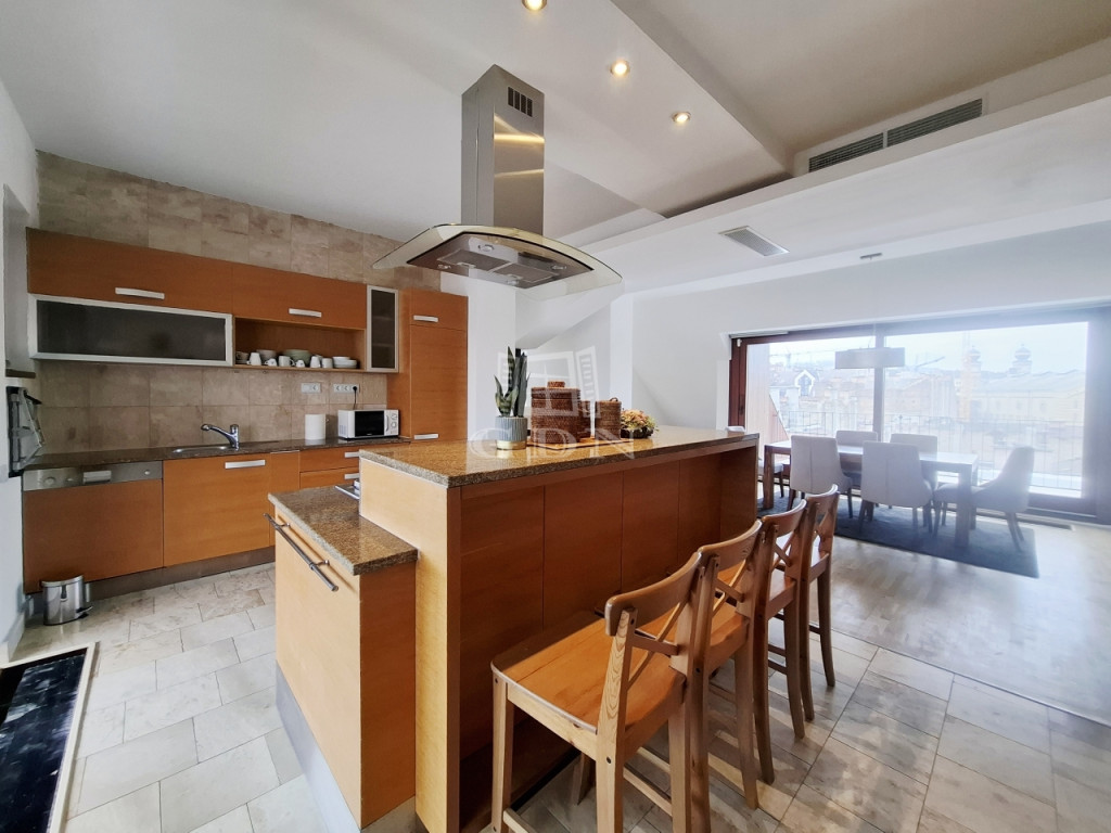 VÁROSI PANORÁMÁS PENTHOUSE, 105 M2 TERASZ!!VII. kerületben, Kazinczy utcában kínálunk eladásra egy 6. emeleti (legfelső szint), 188 m2 lakóterületű, 105 m2-es terasszal rendelkező penthouse lakást, ahonnan szép kilátás nyílik a városra.