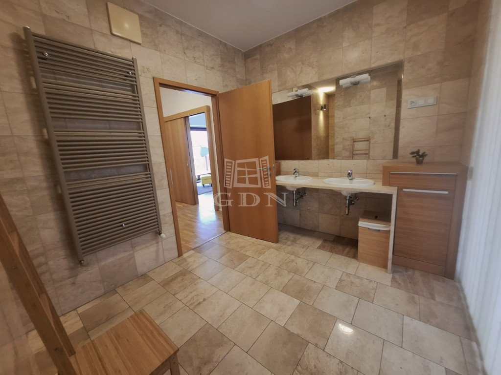 A lakás hatalmas, tágas terekkel rendelkezik, 2 nagy hálószoba, gardróbbal, saját fürdőszobákkal, beépített szekrényekkel.
