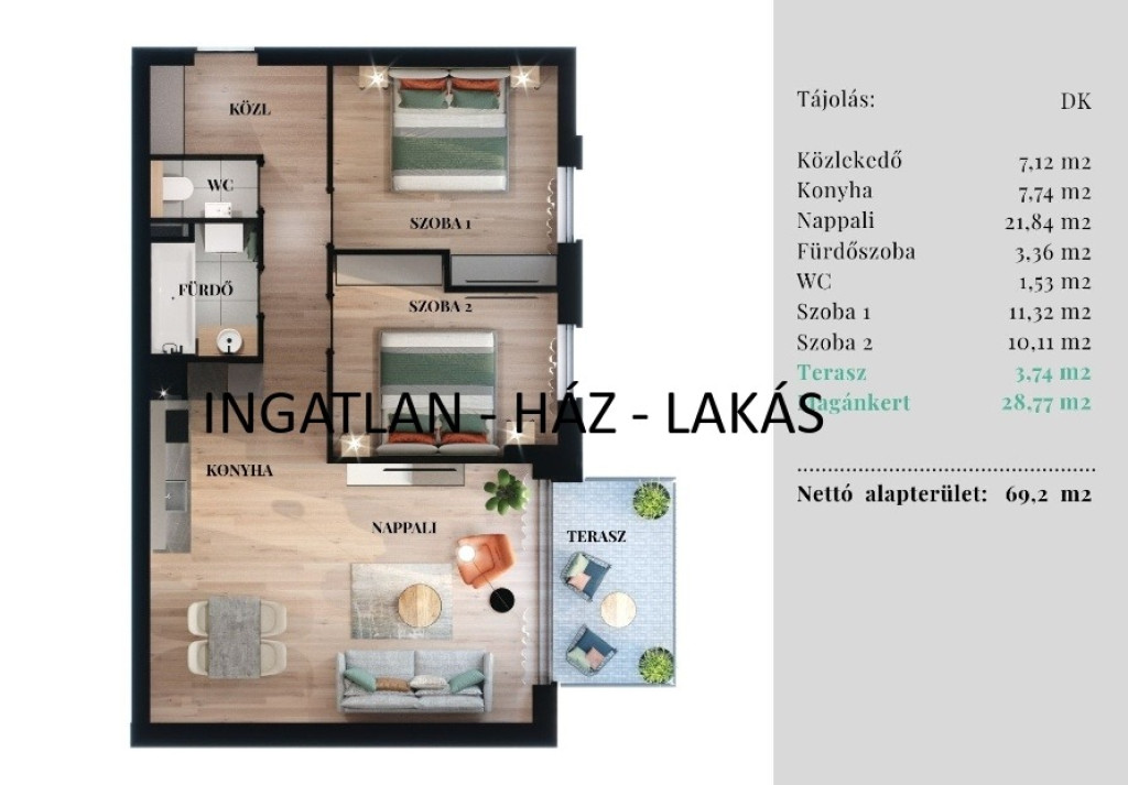 Hivatkozási szám: IHL-G-P-F02F02 lakás Terasz: 4 nm Kert: 26 nm