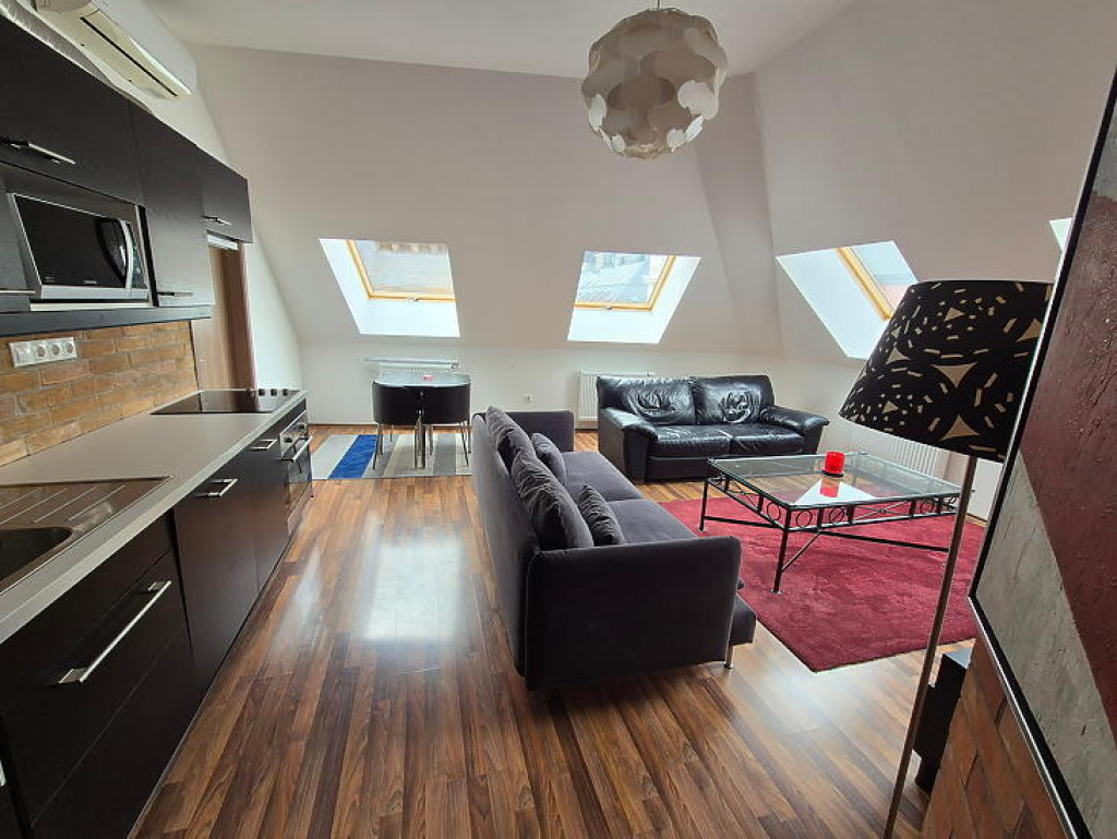 Eladó Budapest belvárosában, a Király utcában, egy igazi kuriózum!Az ingatlan 48 m2-es hasznos alapterülettel rendelkezik, míg a valóságos mérete összesen 64 m2. Az újépítésű lakás szintráépítéssel jött létre egy liftes társasház IV. emeletén.