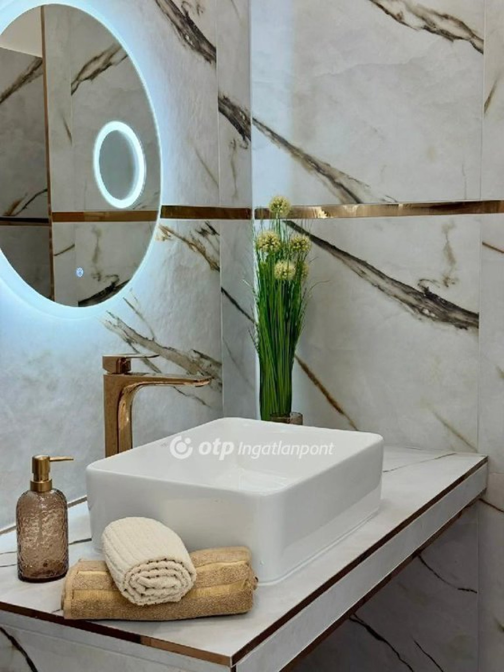 Az esztétikáról minőségi és stílusos anyagok gondoskodnak, a TELJES BERENDEZÉS a vételár részét képezi ( hűtő-fűtő klíma, mosogatógép, páraelszívó, bútorok és kiegészítők?), igazi beleszeretős kis lakás!