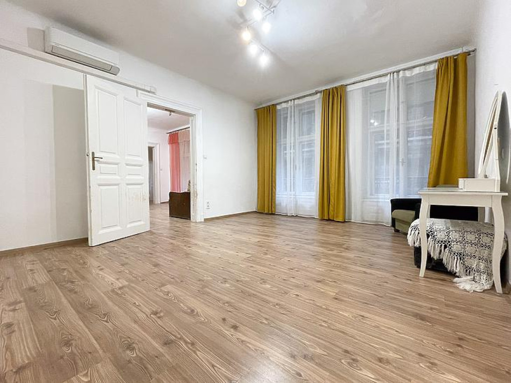 Palotanegyedben emeleti, tágas lakás egy XIX. század végén épült, klasszikus társasházban. Az ingatlan a ház hátsó homlokzati traktusában található, és ezen a szinten egyedüli lakásként foglalja el a hátsó épületszárnyat.A 70 nm-es lakás 3 szobával, 2 fürdőszobával és 2 mellékhelyiséggel rendelkezik.