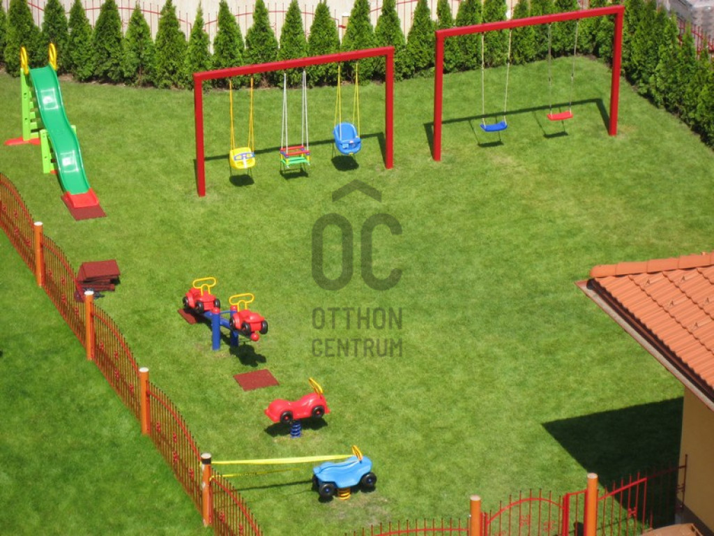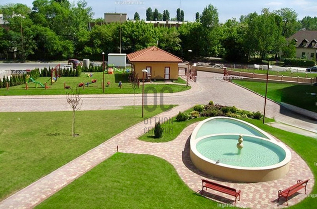 A négyemeletes épületek harmonikus elrendezése falusias hangulatú lakóparkot alkot, zöldterületekkel, szökőkutakkal, játszótérrel és pihenőzónákkal.