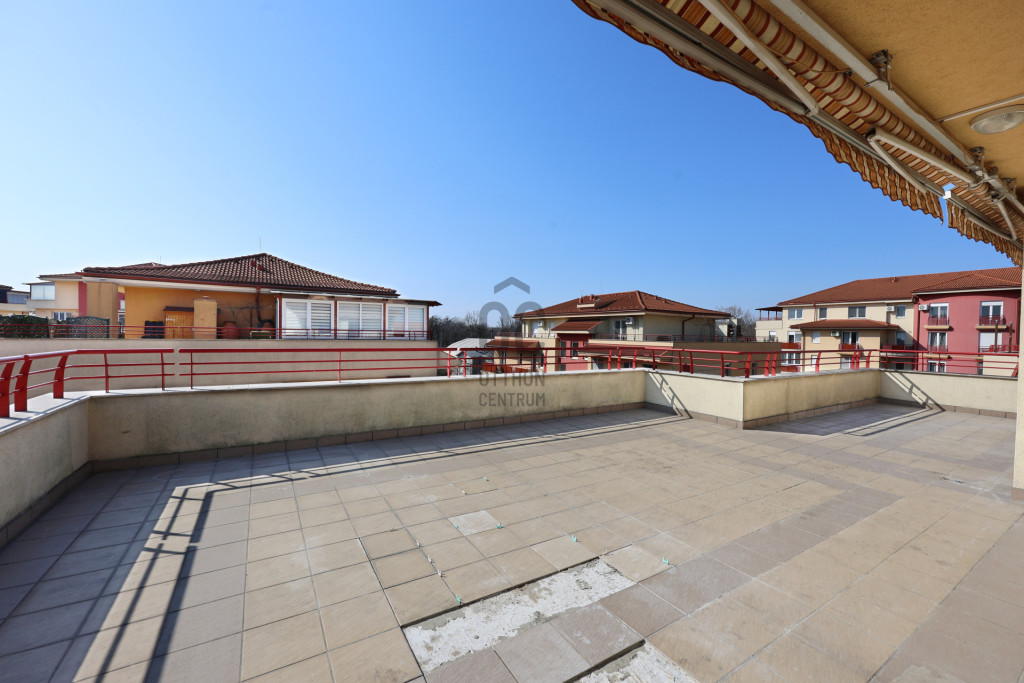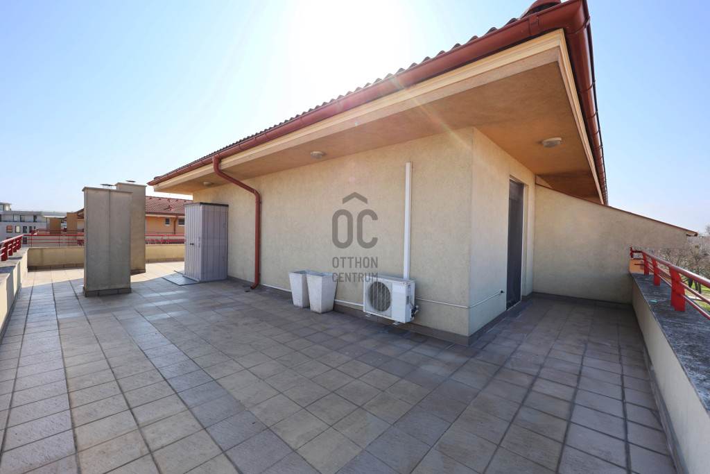 A Taraliget Lakóparkban (Budapest, X.kerület) azonnal költözhető, kiváló minőségű, "igazi" penthouse lakás eladó. A lakóterület 109 nm, hozzá tartozik egy 170 nm-es tetőterasz. Igény szerint a ház alagsorában garázshelyek is vásárolhatók. Mivel az Eladó öt azonos értékű ingatlant értékesít, a leendő tulajdonos szabadon választhat. A kínált penthouse-ok egyenként a négyemeletes épületek legfelső szintjén helyezkednek el, és első használatbavételük 2012 márciusában volt.Igazi Penthouse Életérzés – A Szabadság Bungalója a Tetőn A "penthouse" kifejezés alatt gyakran tetőtéri lakásokat értenek, melyek a lenti, standard lakásoktól csupán nagyobb teraszukban különböznek. Ezzel szemben itt valódi penthouse-okat kínálunk: egy szabadon álló bungaló a ház tetején, mely ötvözi az önálló családi ház szabadságát egy lakópark komfortjával. Rendelkezésére áll egy tágas, körbefutó terasz, mely mindig napfényes. A lépcsőn és liften keresztüli megközelítés exkluzív az Ön számára. A tetőteraszon építhető természetes kulissza, és van hely a kényelmi funkcióknak is, mint a szauna, pezsgőfürdő, napozószigetek vagy akár egy játszótér. Vendégei senkit sem zavarnak, és ők maguk is zavartalanul élvezhetik a privát szférát.