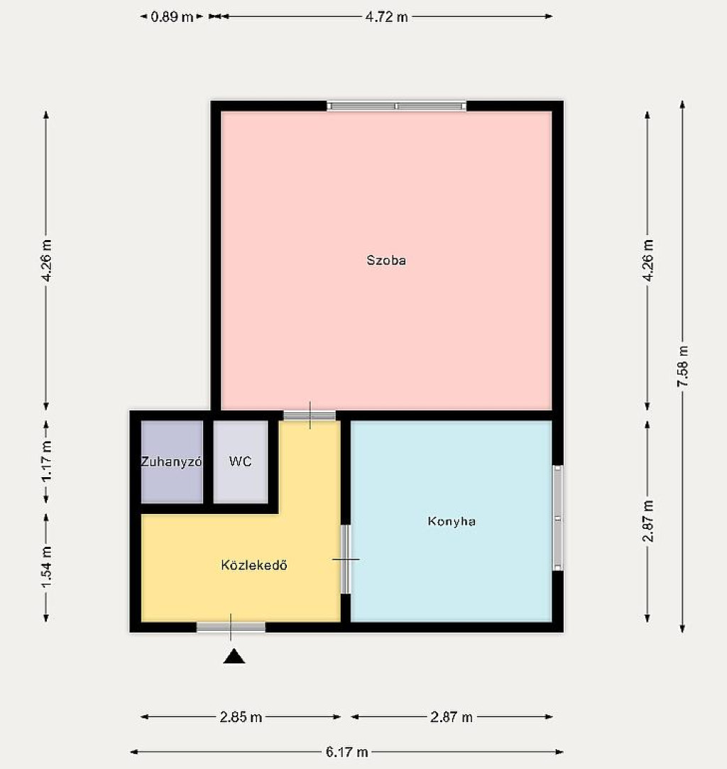 A lakás DÉLNYUGATI TÁJOLÁSÁNAK, valamint az ablakok méretének és elhelyezkedésének köszönhetően alig érezhető az ingatlan félszuterén jellege.