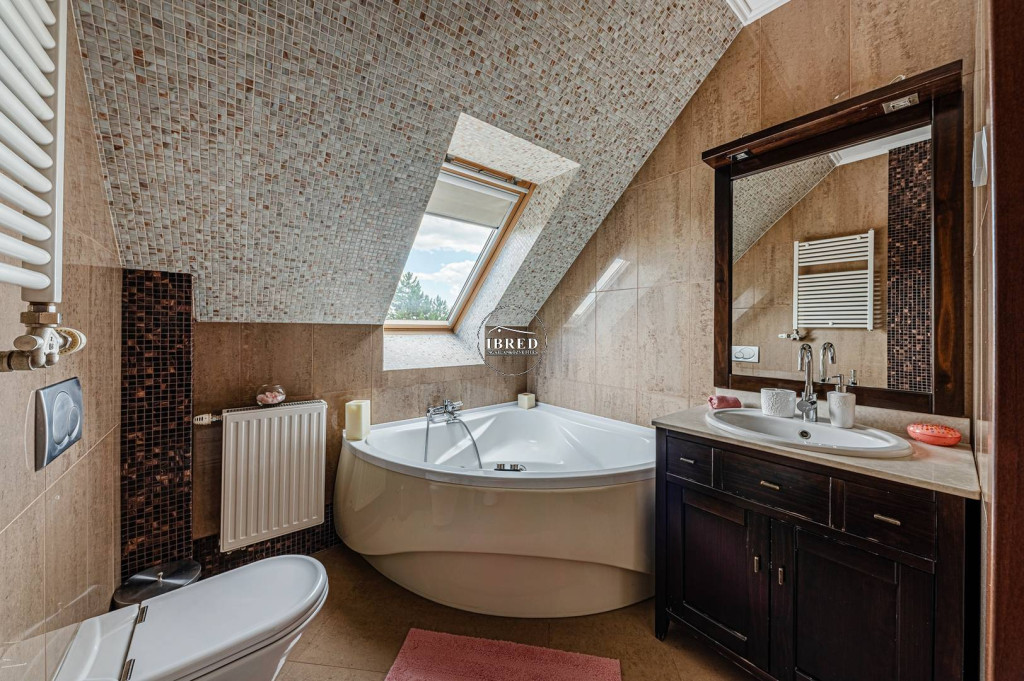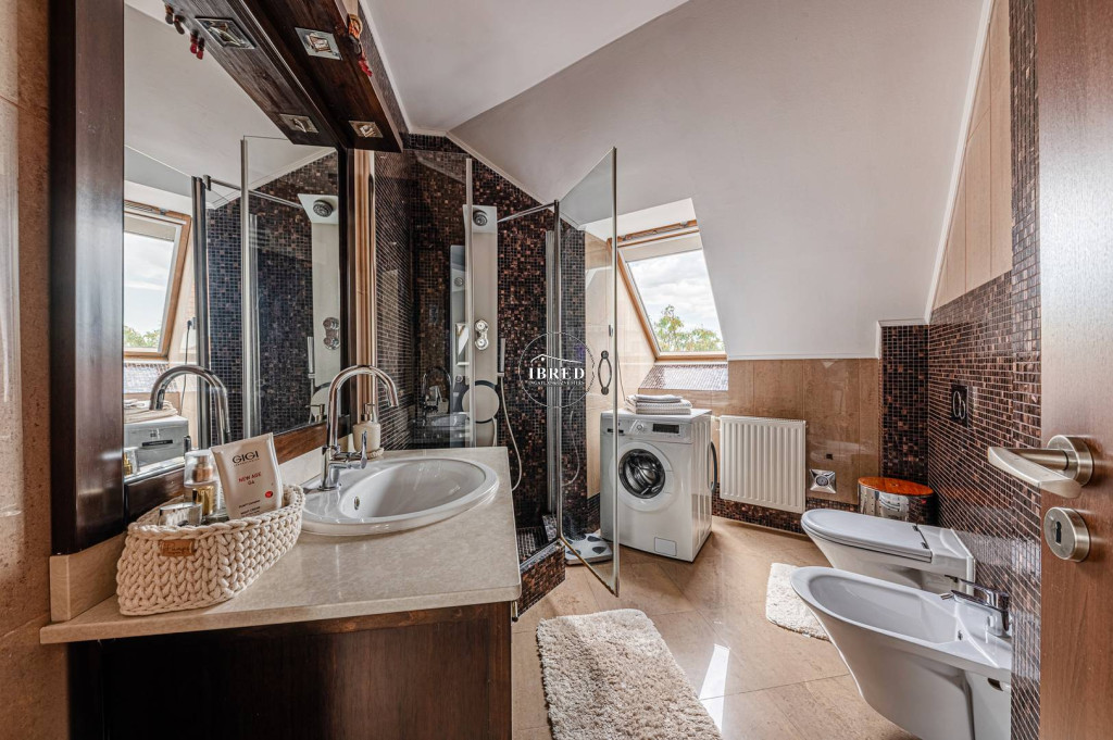 Két különálló, teljes felszereltségű fürdőszoba, bidével és WC-vel, valamint egy kamra is a lakók kényelmét szolgálja. A klimatizálásról két légkondicionáló, a fűtésről egy új Bosch kondenzációs kazán gondoskodik.