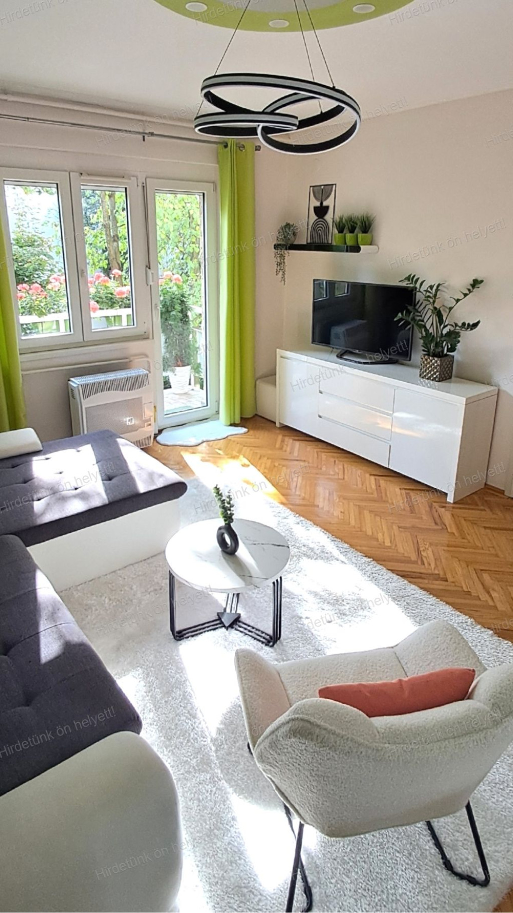 Felújítása során új nyílászárókat, burkolatokat, szanitereket kapott, az étkezős konyha és előszoba egybenyitott kialakítása tágas életteret biztosít.