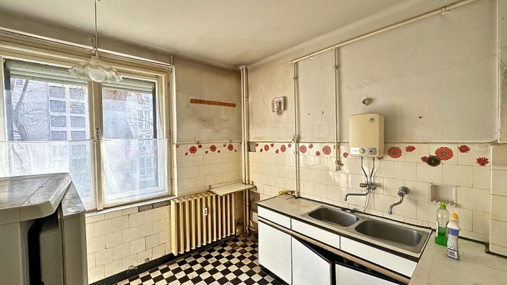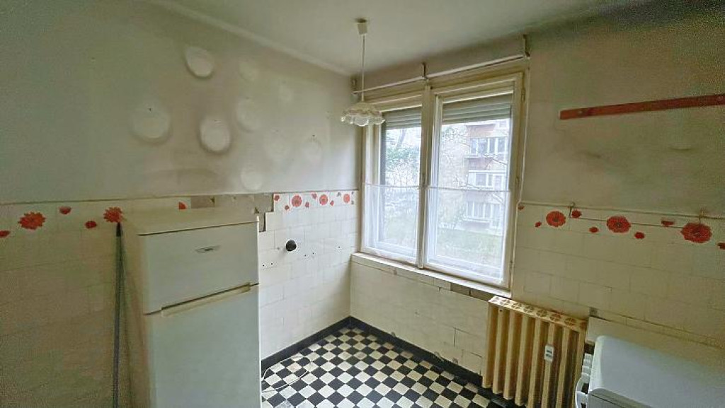 A 8 nm-es, ablakos konyhát, kamrát és a külön wc -t az előszobából érhetjük el, míg a káddal szerelt fürdőszobát egy közlekedőből közelíthetjük meg.