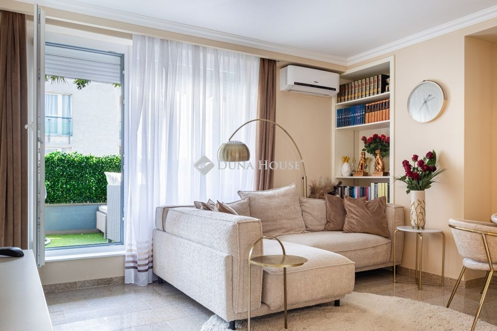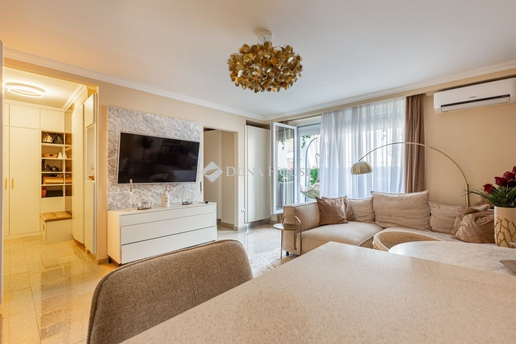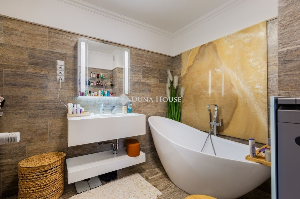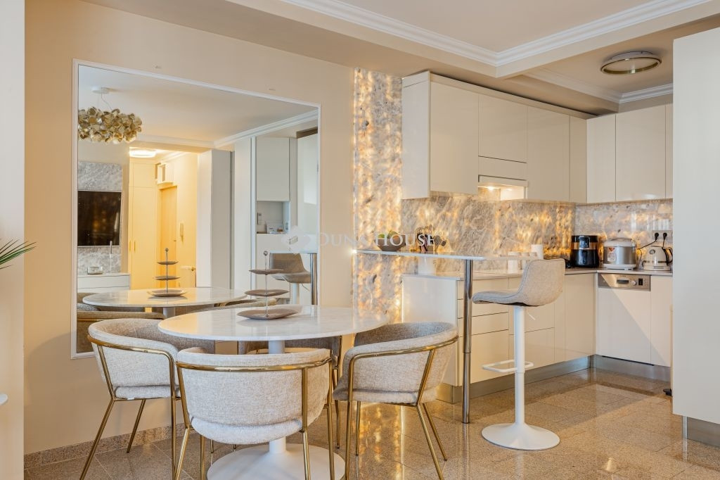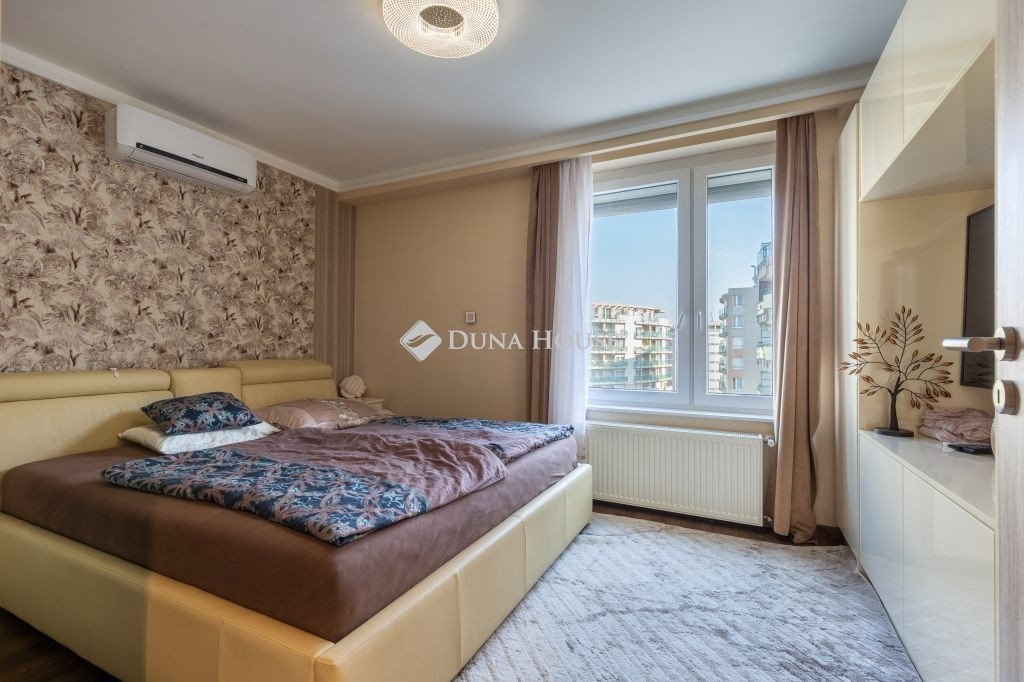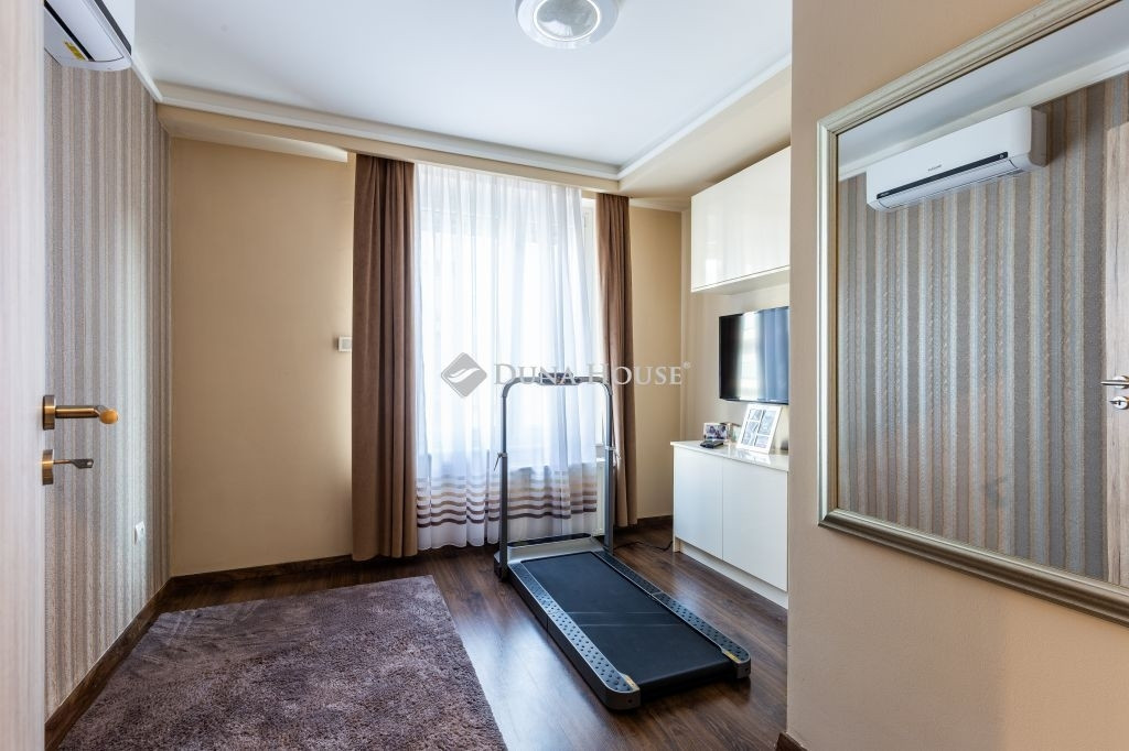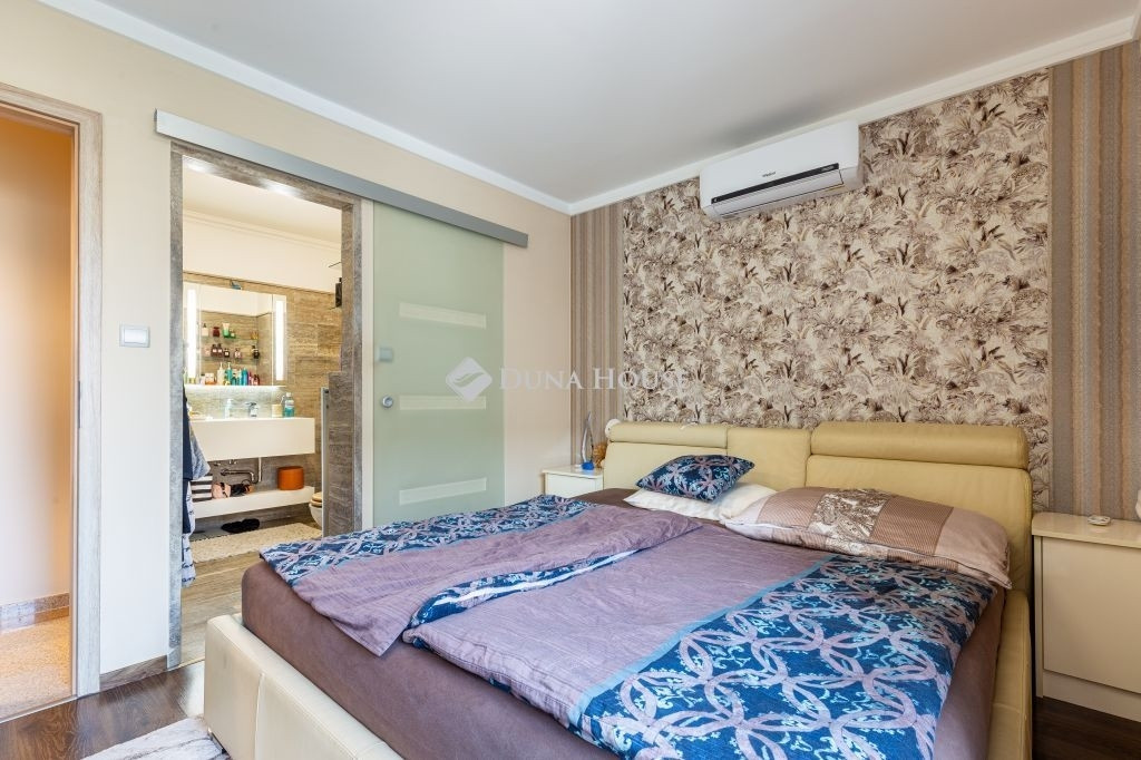 A lakás két külön nyíló szobával rendelkezik, melyek közül az egyik gardróbkapcsolattal kialakított. A fürdőszobai elrendezés különösen praktikus: egy zuhanyzós fürdőszoba és külön mellékhelyiség mellett egy további, kádas fürdőszoba is rendelkezésre áll WC-vel, ami kényelmes használatot biztosít akár család számára is, mivel ez az egyik hálószobából közvetlenül nyílik. A kellemes hőmérsékletről klímaberendezés gondoskodik.