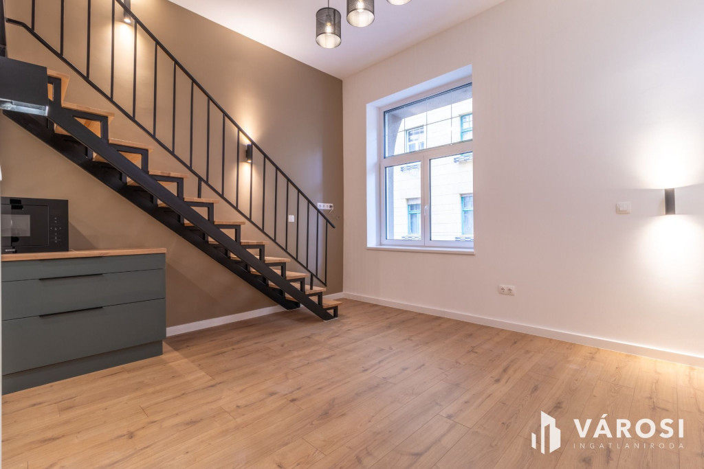 Modern, galériás okosotthon eladó a 13. kerületben, a Visegrádi utca elején – azonnal birtokba vehető!A XIII. kerület egyik legjobb részén, a Visegrádi utca elején, a körúthoz közel, egy szépen karbantartott, 6 szintes társasház 1. emeletén található ez a teljes körűen felújított, 39 m²-es, galériás, 1 szobás lakás.