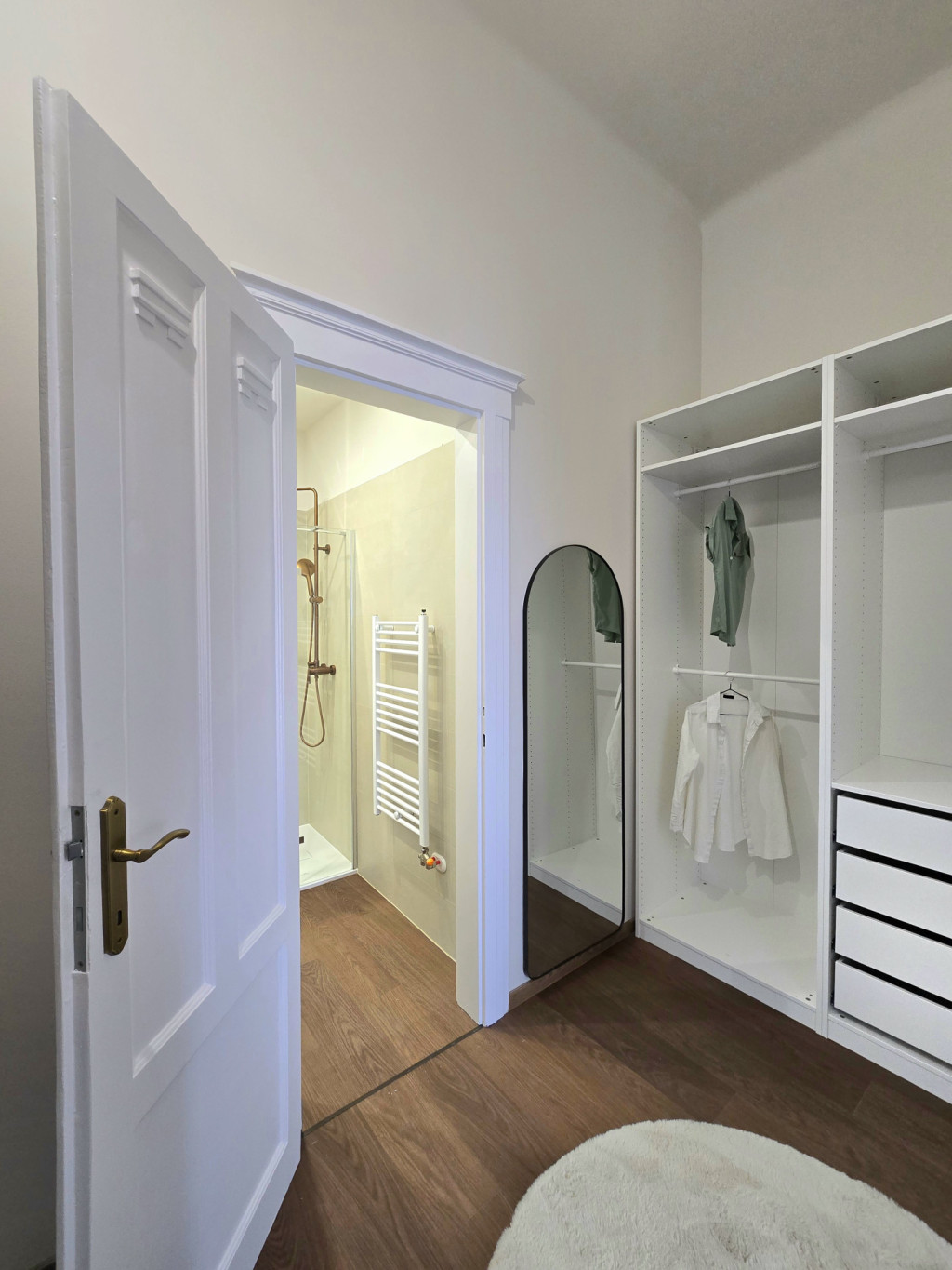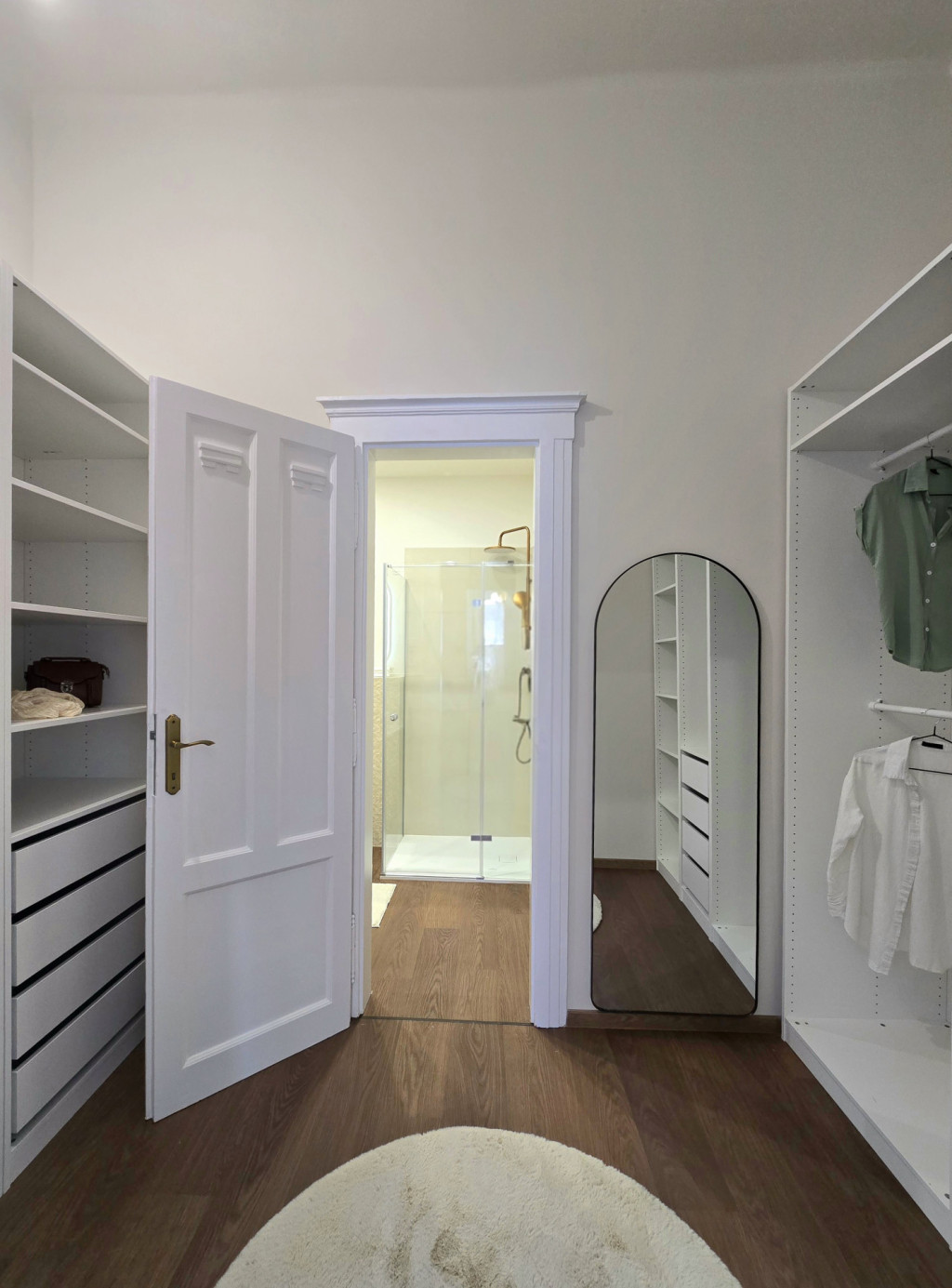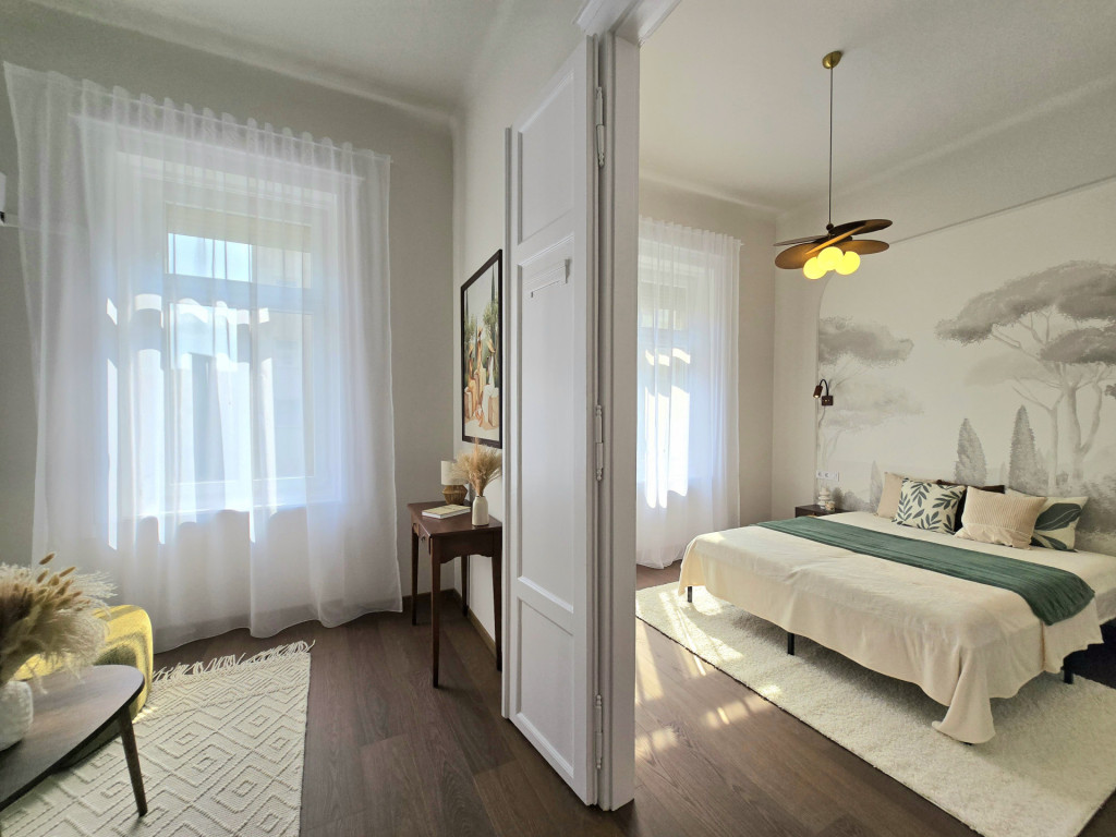 Master bedroom - A lakás egyik fénypontja, ahol a tágas hálóból saját gardróbszoba és privát, zuhanyzós fürdőszoba nyílik