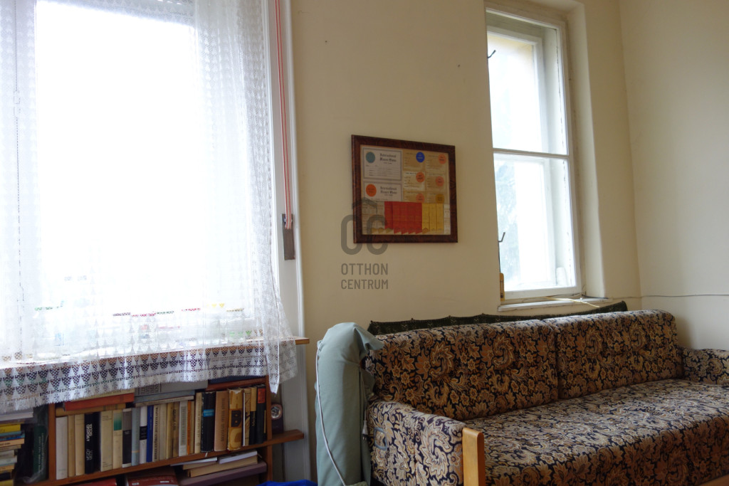 ablakokkal bíró szoba, a különálló konyha és a nagy nappali. Az előtérből nyílik egy külön wc. Hatalmas ablakai révén és DNY-i fekvésének köszönhetően