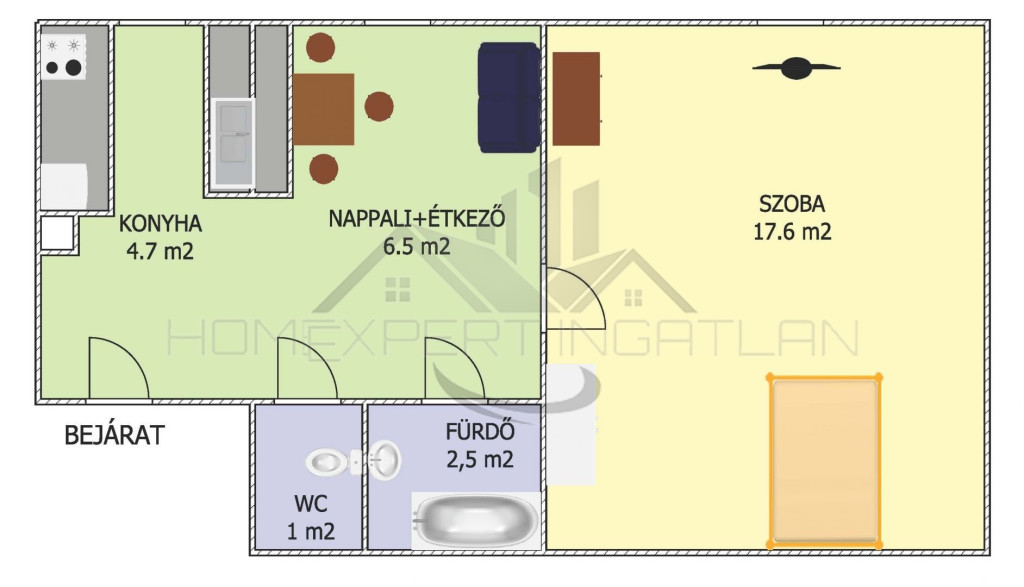 • Mini nappali étkezővel + 1 külön szoba
