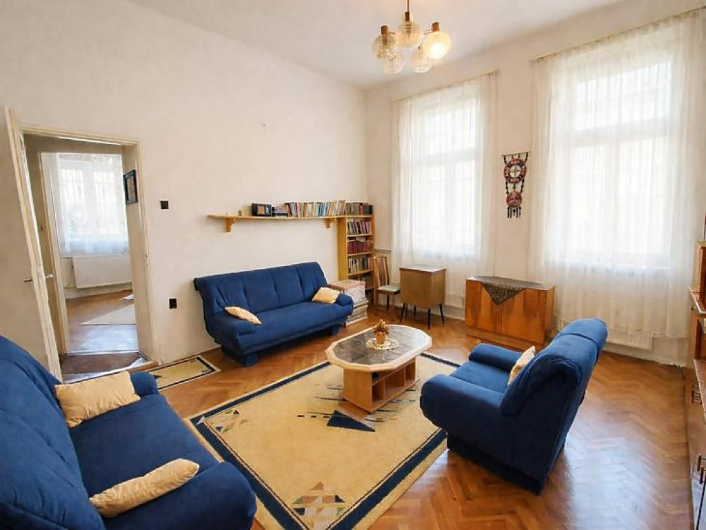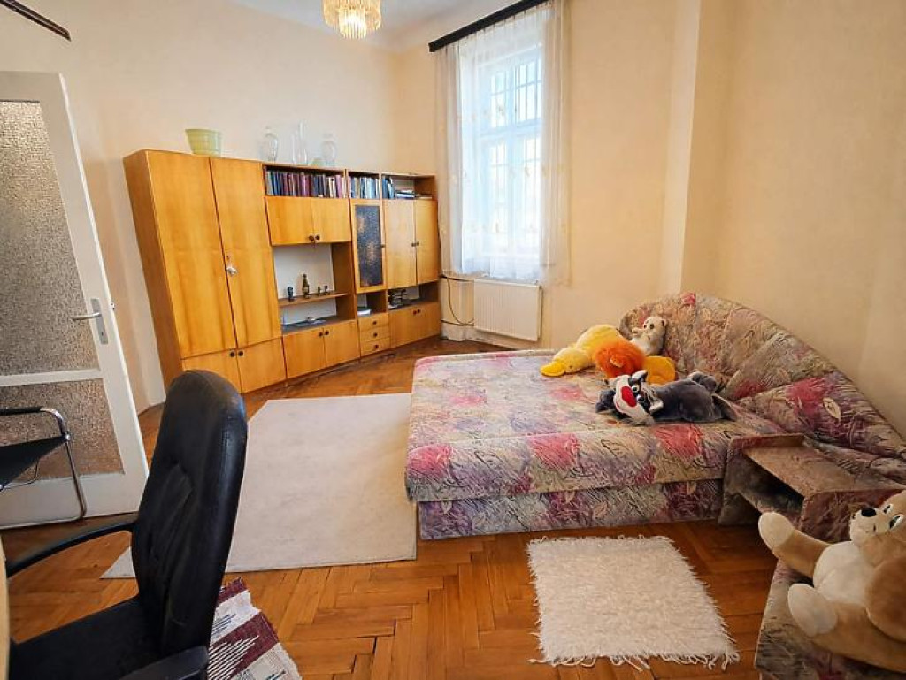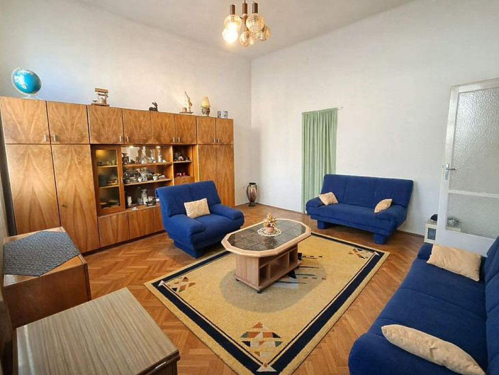 A lakásban konyha, 2 + 2 félszoba, étkezős konyha, fürdőszoba, közlekedő és gardróbszoba található. A víz- és a villanyhálózat felújítandó, esztétikailag közepes állapotú. A nyílászárók részben cserélve lettek műanyag hő- és hangszigetelt ablakokra és bejárati ajtóra. A konyhában és a fürdőszobában hidegburkolatok, a szobákban faparketta található. A fűtésről gázcirkó gondoskodik és lapradiátorok adják le a hőt. A konyhabútor a vételár részét, a többi berendezés megegyezés tárgyát képezi.