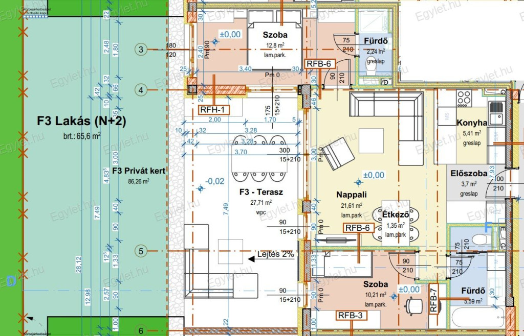 Ennél a beruházásnál még több egyéb méretű lakás elérhető, akár a nettó 86 nm-es 4 szobás lakásig, a földszinten kertkapcsolattal, akár 393nm -es kert mérettel, vagy az emeleti lakásoknál dupla teraszokkal.