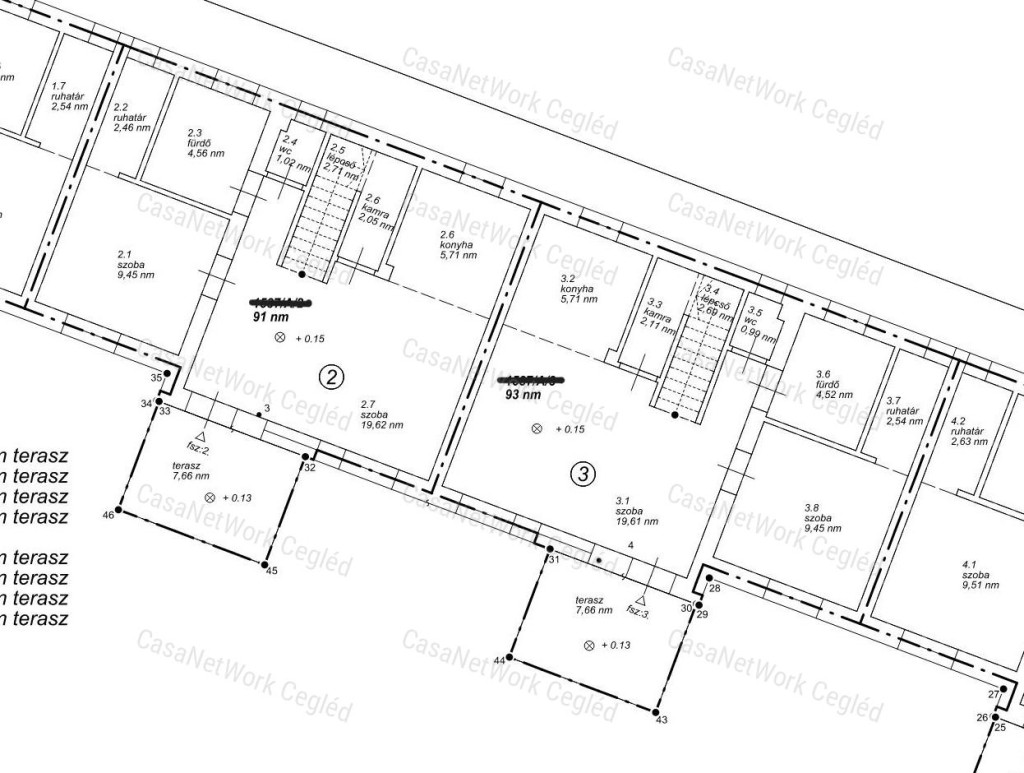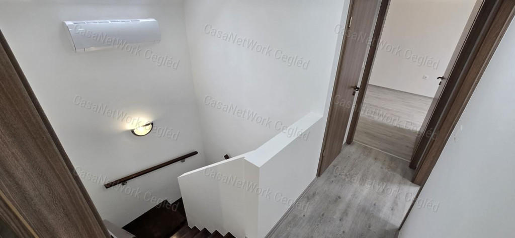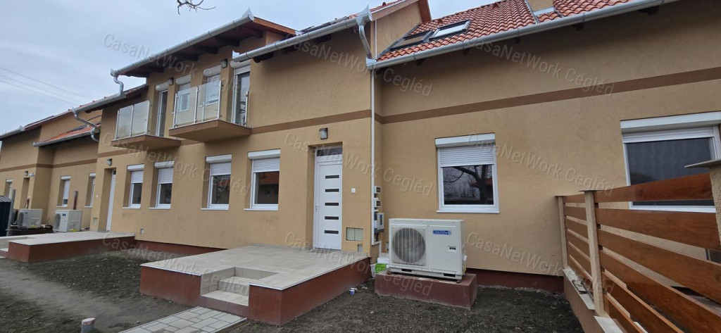 A CasaNetwork Cegléd kínálatában elérhető egy 4 lakásos, modern társasház, amelyből a 3-as számú lakás eladó (azonosító: 174602147).Az ingatlan 91 m² alapterületű, sorházi jellegű épület része, zárt udvarban helyezkedik el, saját kerttel és parkolóhellyel.A lakás önálló helyrajzi számmal rendelkezik, valamint fix 3% hitelre OSP konstrukcióra is alkalmas.A lakások kétszintesek, tetőtér-beépítésesek, tégla építésűek, korszerű anyagokkal, modern technológiával és kiváló hőszigeteléssel készülnek. A tágas, napfényes helyiségek és az átgondolt belső elrendezés kényelmes, otthonos életteret biztosítanak.A társasház Cegléd egyik kedvelt környékén található. A közelben bevásárlási lehetőség és buszmegálló is megtalálhatók.Ezek a lakások ideális választást jelentenek családoknak és pároknak, akik minőségi, új építésű otthont keresnek Cegléden, zárt udvarban, saját kerttel és parkolóval.A földszinten egy világos nappali, konyha, fürdőszoba, külön WC, szoba és tároló kapott helyet, valamint egy 7,6 m²-es terasz is tartozik a lakáshoz, amely közvetlen kapcsolatot biztosít a kerttel. Az emeleten egy közlekedő, három külön nyíló szoba, egy WC és egy 1,8 m²-es erkély található.Az ingatlan A+ energetikai besorolású, tégla falazattal, beton alappal és hungarocell hőszigeteléssel épül. A belmagasság 2,7 méter, a nyílászárók korszerű, hő- és hangszigetelt műanyag ablakok, a tetőtérben pedig VELUX tetőablakok kerülnek beépítésre.