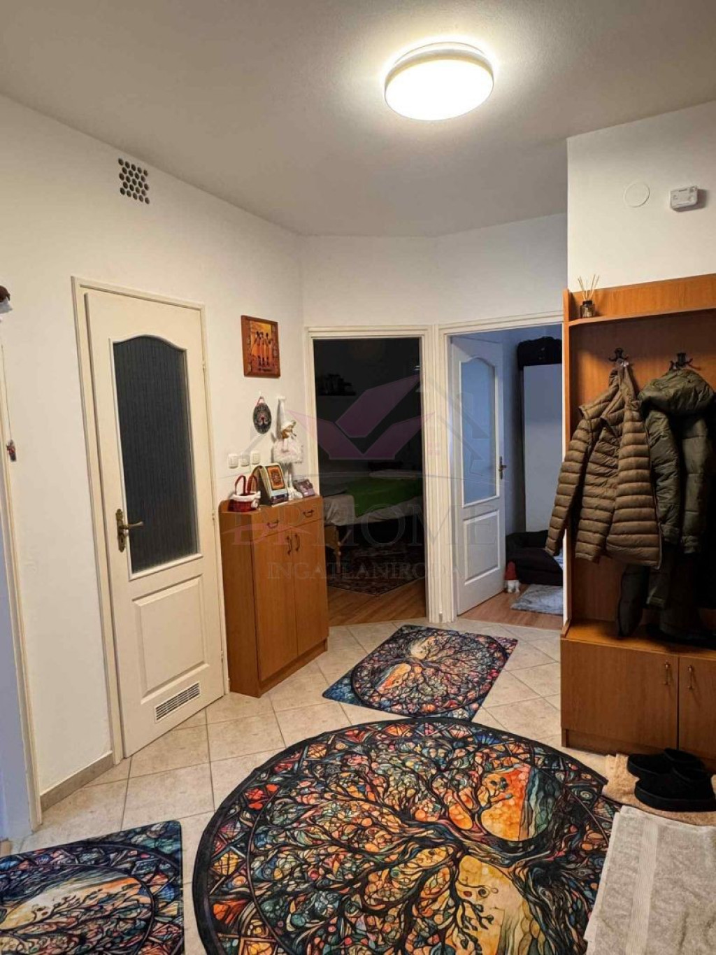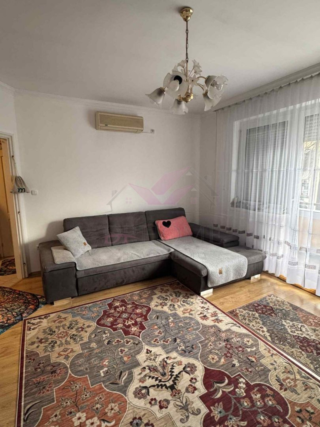 - Burkolatok: a nappaliban és a szobákban laminált padló, a lakás többi helyiségében kerámia