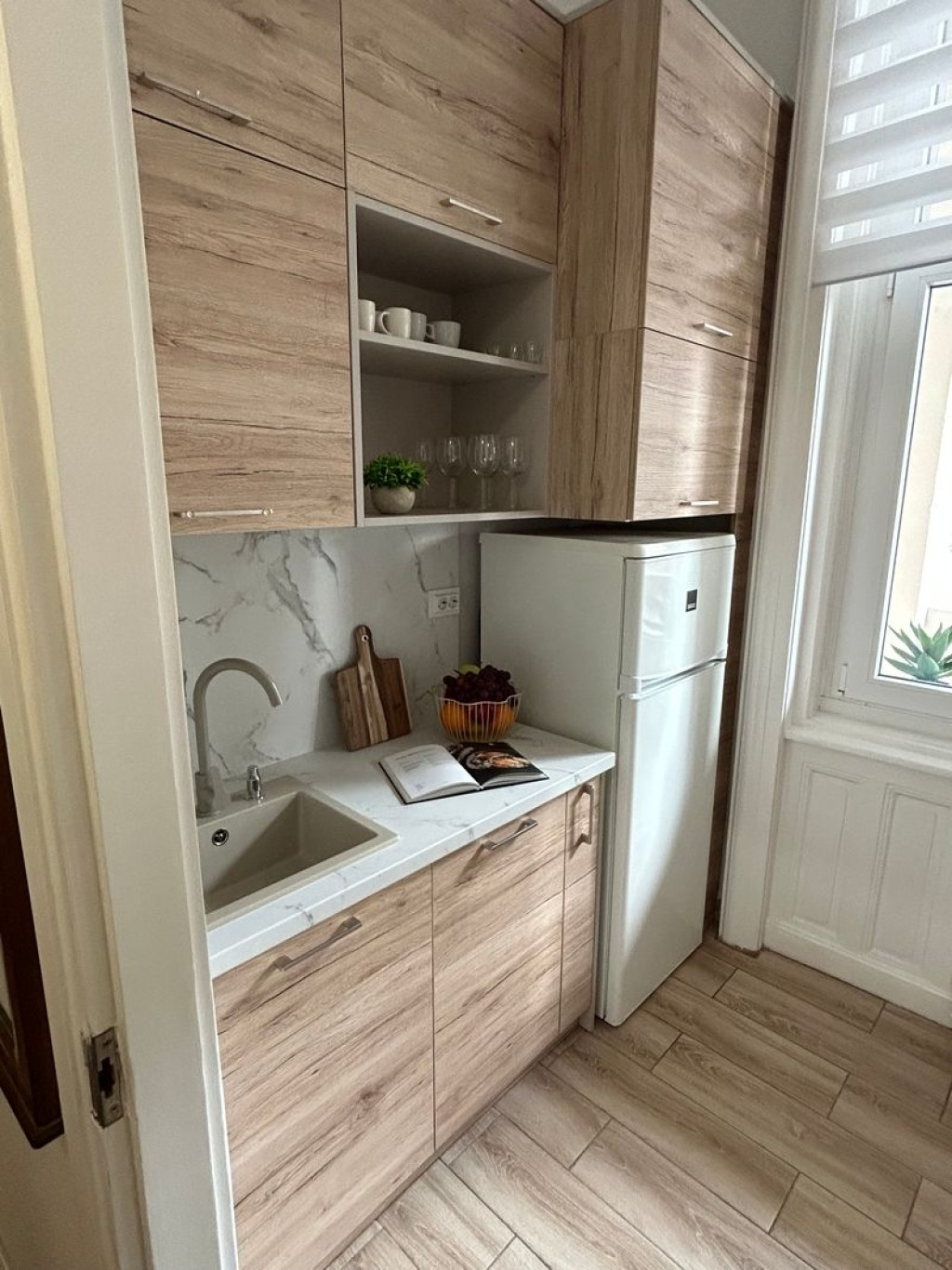 - a loggia 6 m2-es és a Gambrinus köz felé néz, a bútorzata új