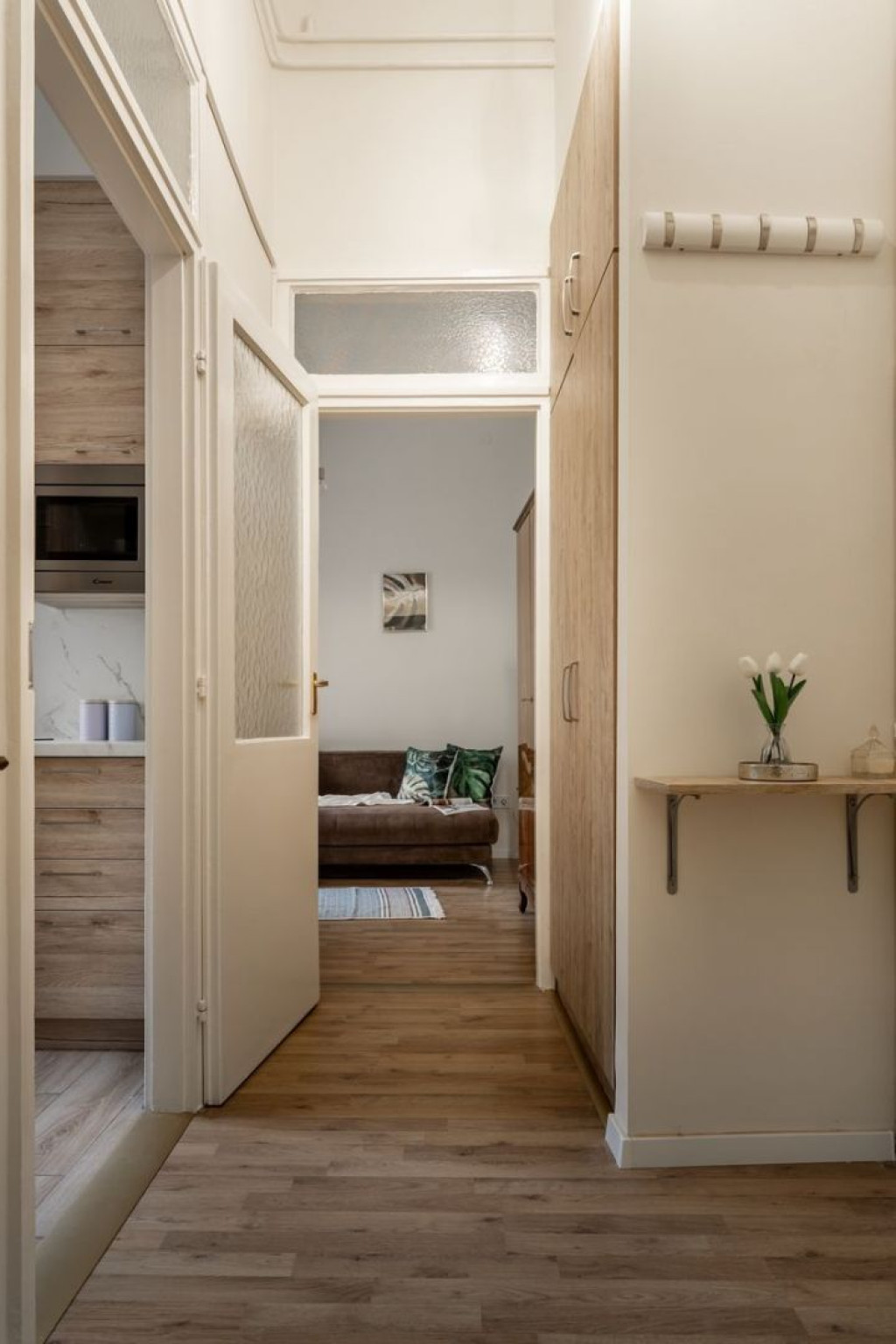 - az ingatlan a 3. emeleten egy ajtóval leválasztott folyosórészen helyezkedik el, itt mindössze két másik lakás található még, ez a megoldás teljes nyugalmat biztosít