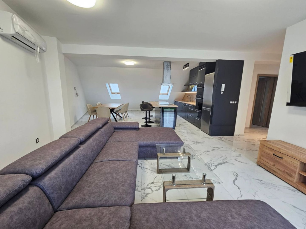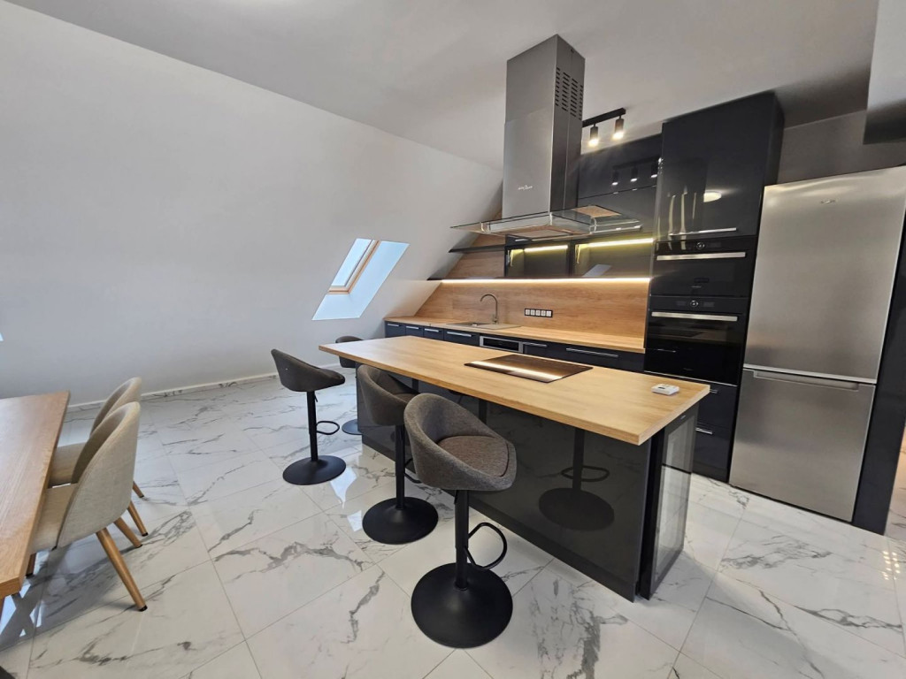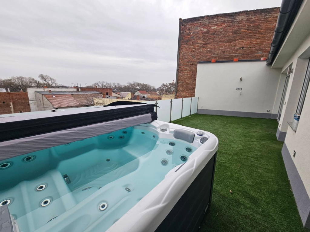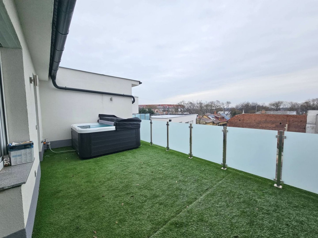 Debrecen belvárosában, új építésű társasházban, 90 nm-es, amerikai konyhás nappali + 3 hálószobás, 35 nm-es terasszal rendelkező, fiatalos, bútorozott, gépesített lakás eladó.