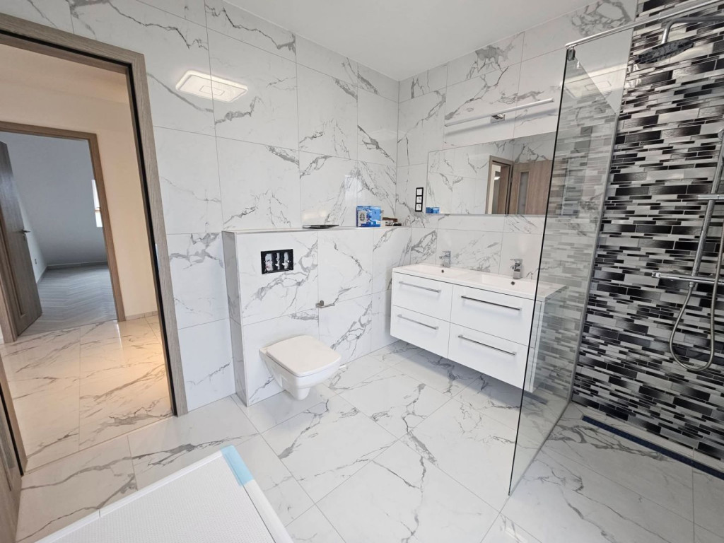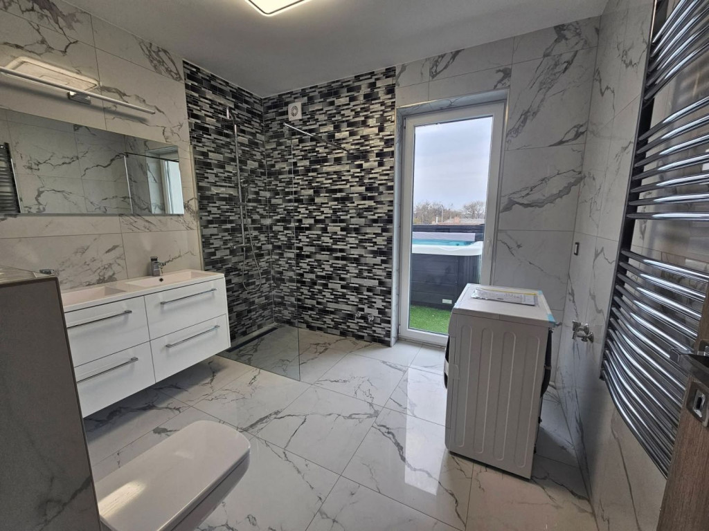 Fürdőszoba wc-vel, külön wc, műfüves terasz, klíma.