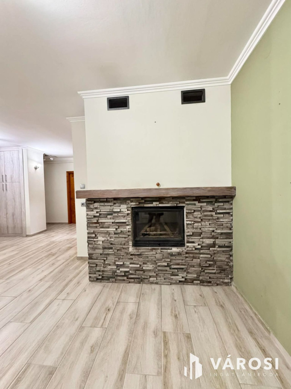 - nappaliban beépített, működő fatüzelésű kandallóval