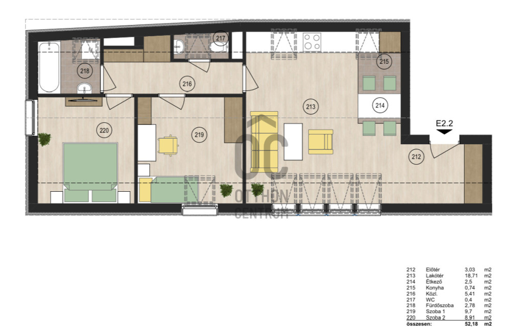 - Alapterület 52 m2