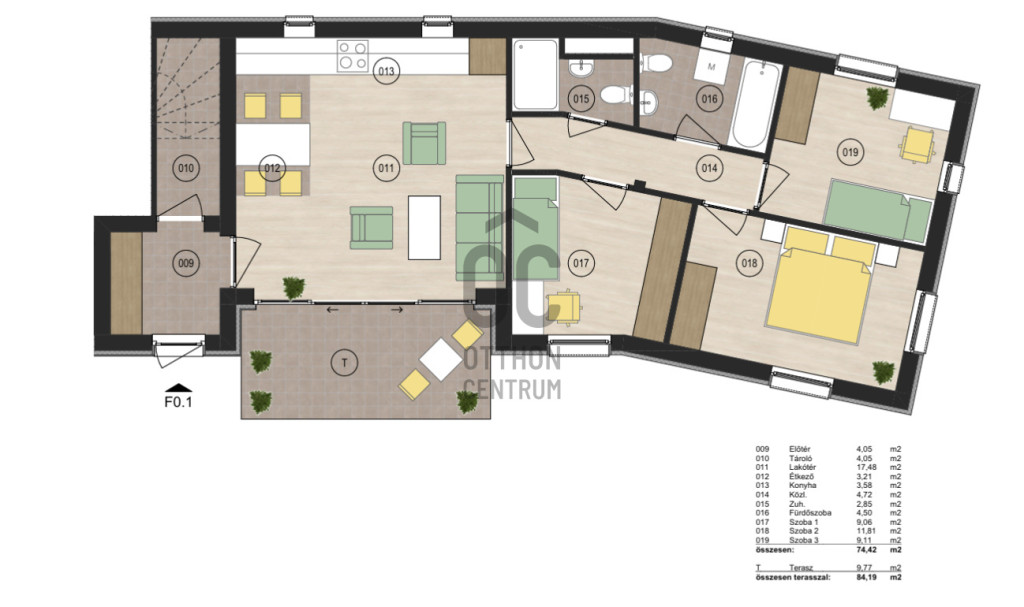 Az ingatlan a földszinten helyezkedik el, terasz kapcsolatos.Projekt bemutatása