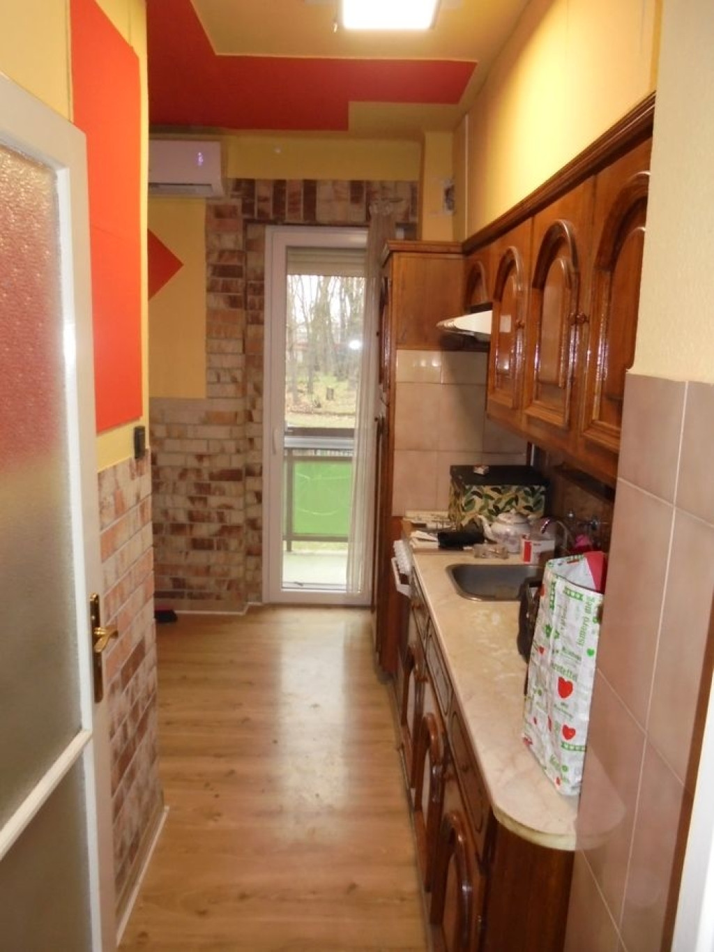- a lakásban az egyik szobát, fürdőszobát és az étkezőkonyhát felújították, a szobák külön nyílóak és saját klímaegységgel szereltek, a két nagyobb szoba összenyitható (így egy új, tágas helyiség hozható létre)