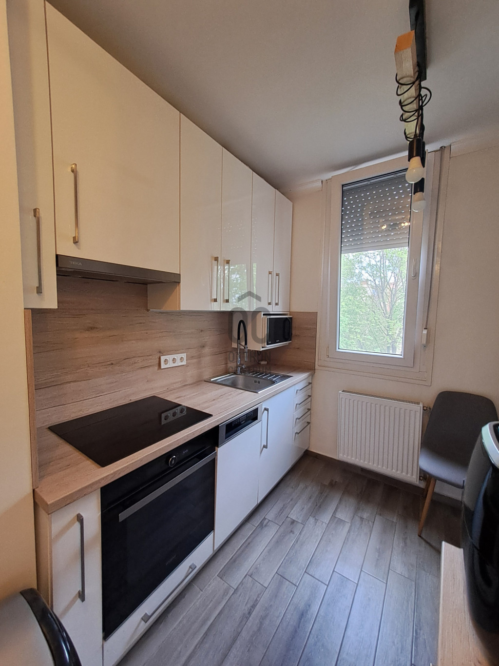 - Modern, gépesített konyhabútor, Whirlpool mosogatógép, indukciós főzőlap és sütő.