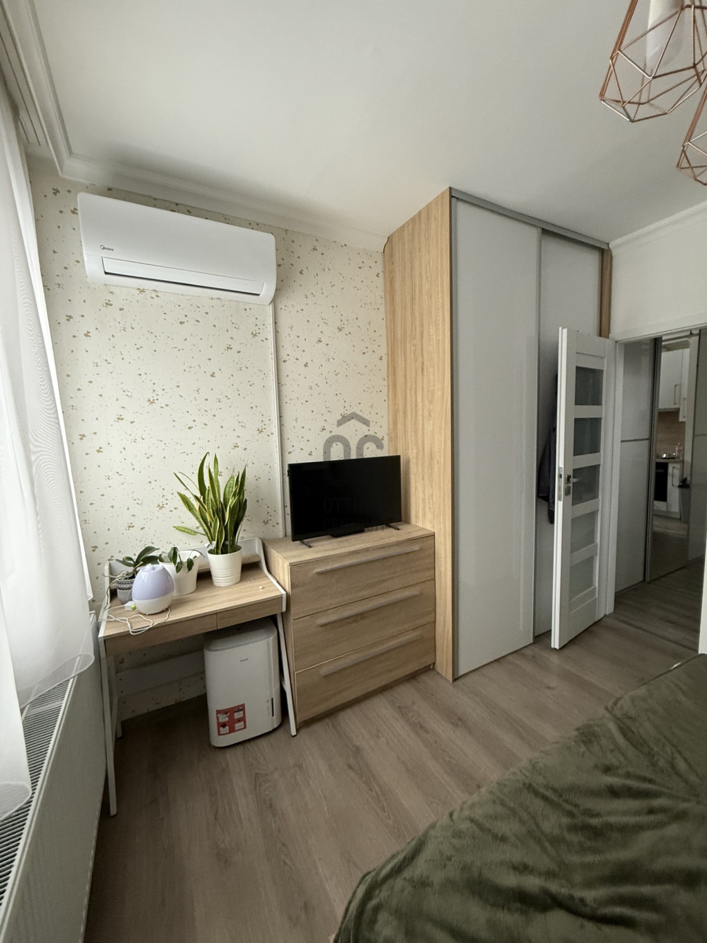 - Az egyik hálószobában esztétikus, asztalos által készített bútorok kerültek beépítésre (gardrób szekrény és faliszekrény).