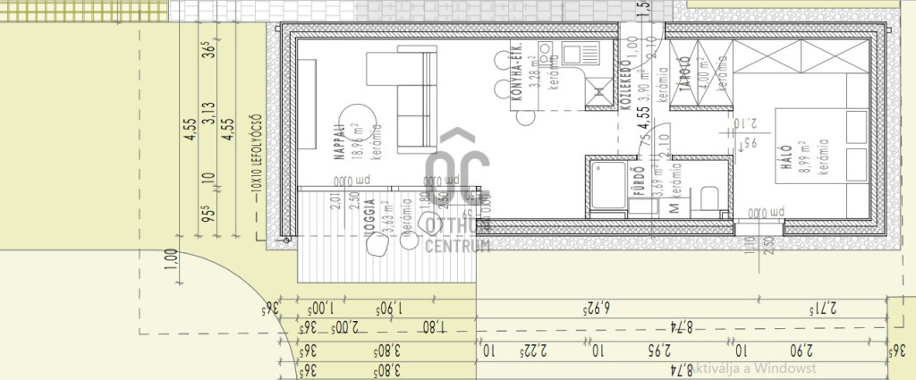 - 43 nm - Nappali- amerikai konyha, hálószoba, fürdőszoba, tároló, 4 nm loggia,