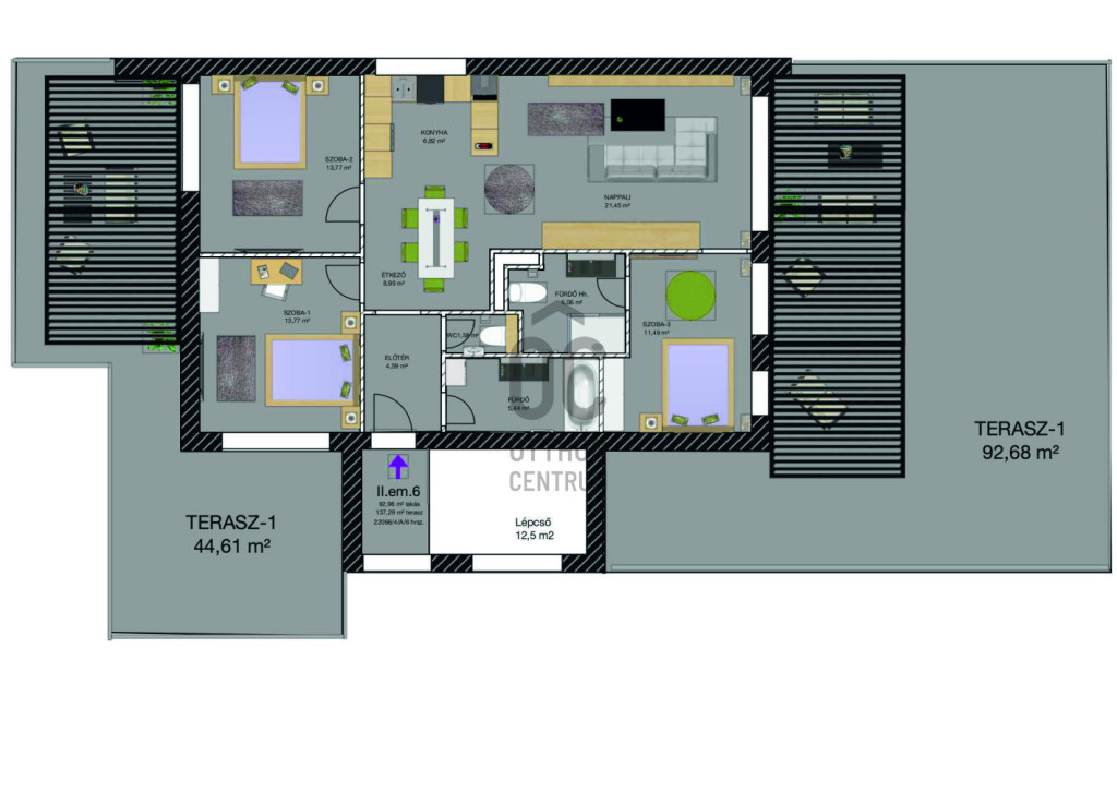 PANORÁMÁS, LUXUS PENTHOUSE LAKÁS: 92,96 m2 a lakás és 137 m2 tetőterasz