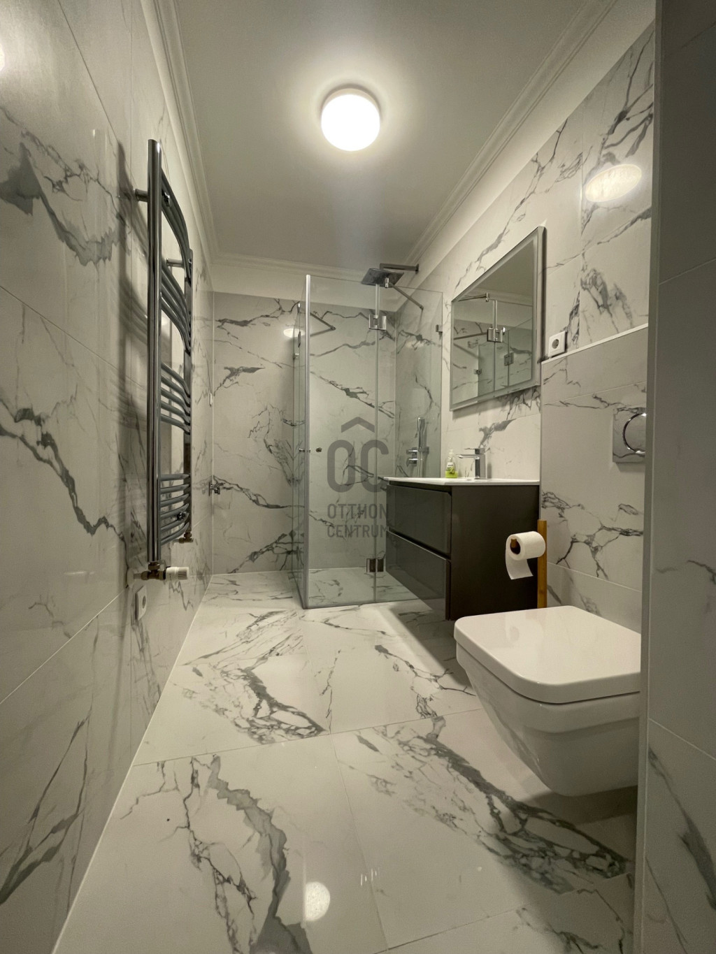- modern fürdő épített zuhannyal