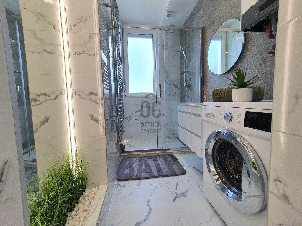 A konyhában nagyteljesítményű, kivezetett páraelszívó, a fürdőszobában pedig dupla szagelszívó biztosítja a megfelelő szellőzést.