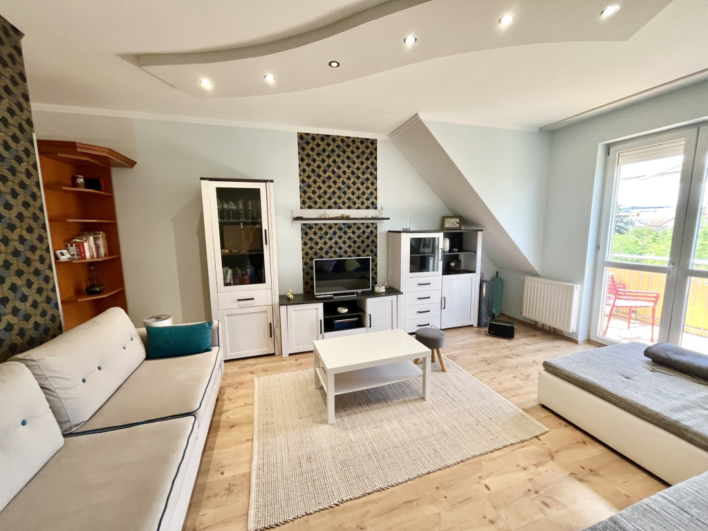 FIGYELEM! Eladó egy 65 nm-es, téglaépítésű, belső kertre néző, tetőtéri lakás, mindössze 12 lakásos, rendezett, megtakarítással rendelkező társasházban, Debrecen Óvárosában.Elrendezés: