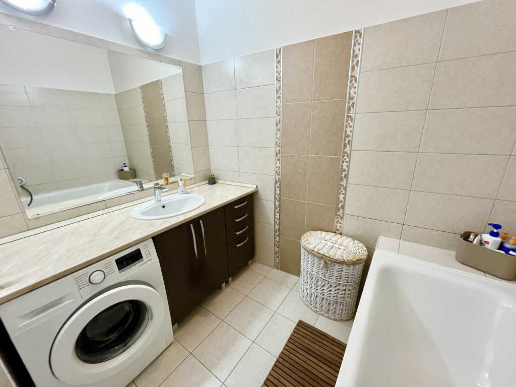 - A fürdőszobában akril fürdőkád, a WC külön helyiségben található, saját kézmosóval.