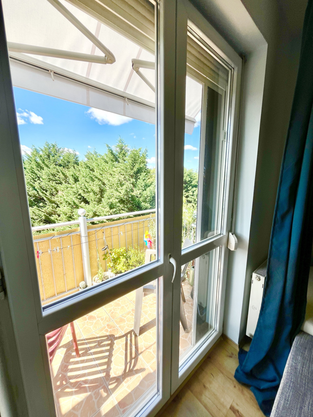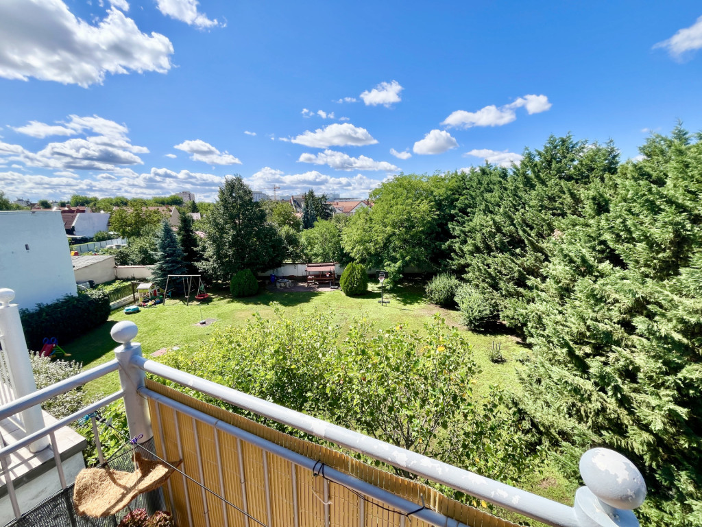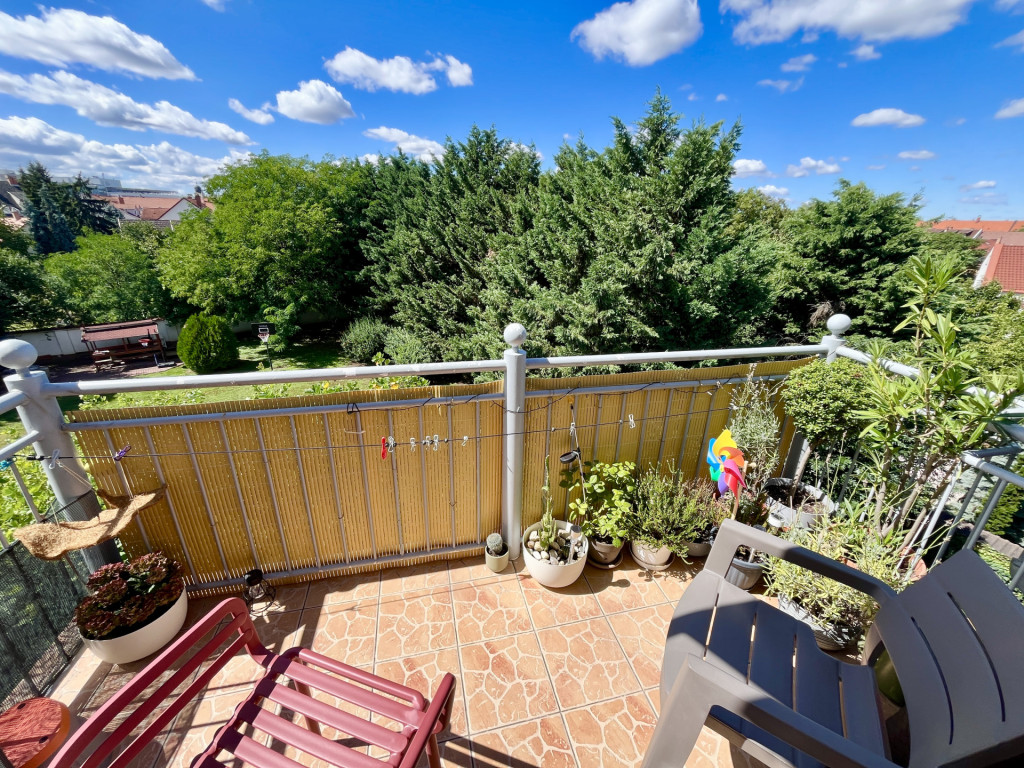 - A lakáshoz egy 5,25 m²-es erkély is tartozik, újonnan felszerelt, kihajtható napellenzővel, mely a gondozott, automata öntözőrendszerrel ellátott belső udvarra néz.