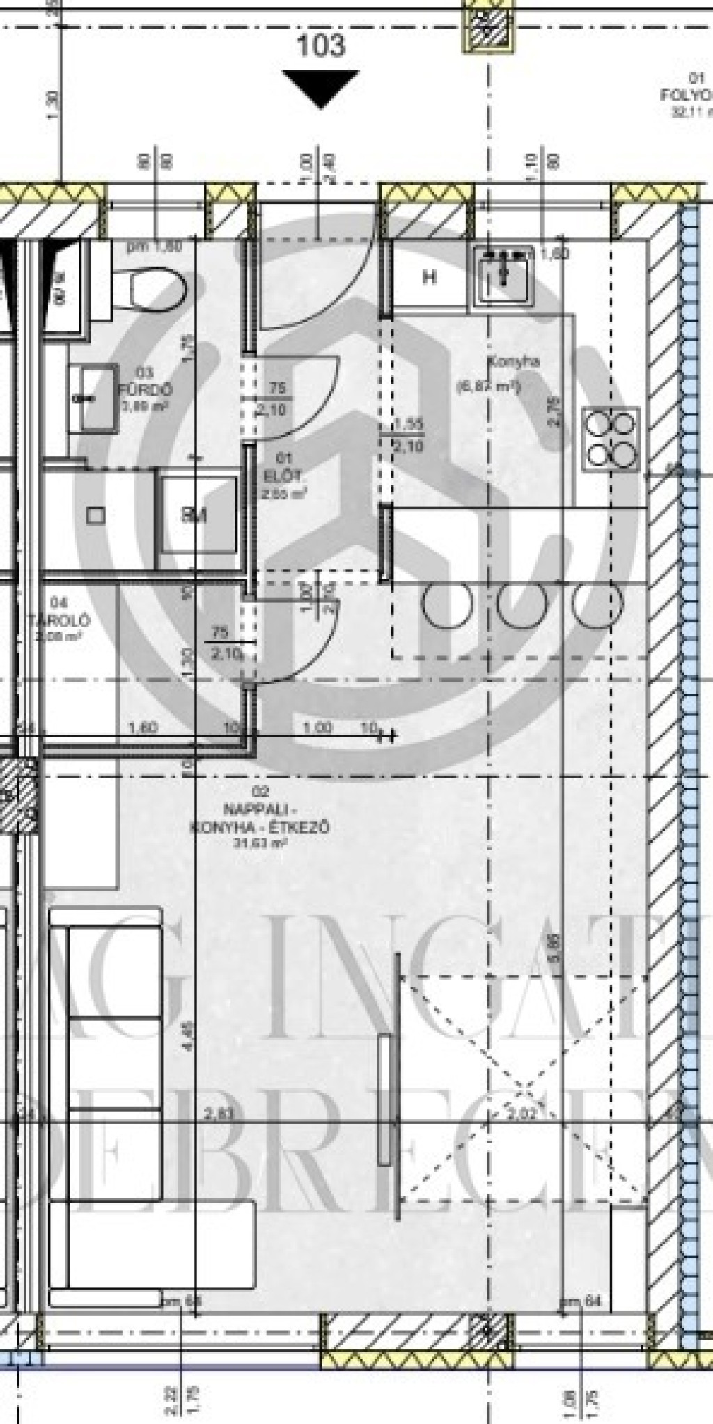 Eladó új építésű, garzon lakás Debrecen, Belvárosban Kölcsey központhoz közelében, magas műszaki tartalommal.Eladó 1. emeleti lakás 40,25 nm-es, nappali-étkező- amerikai konyhás.