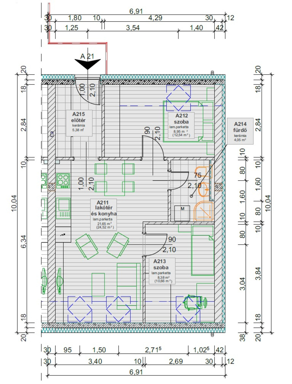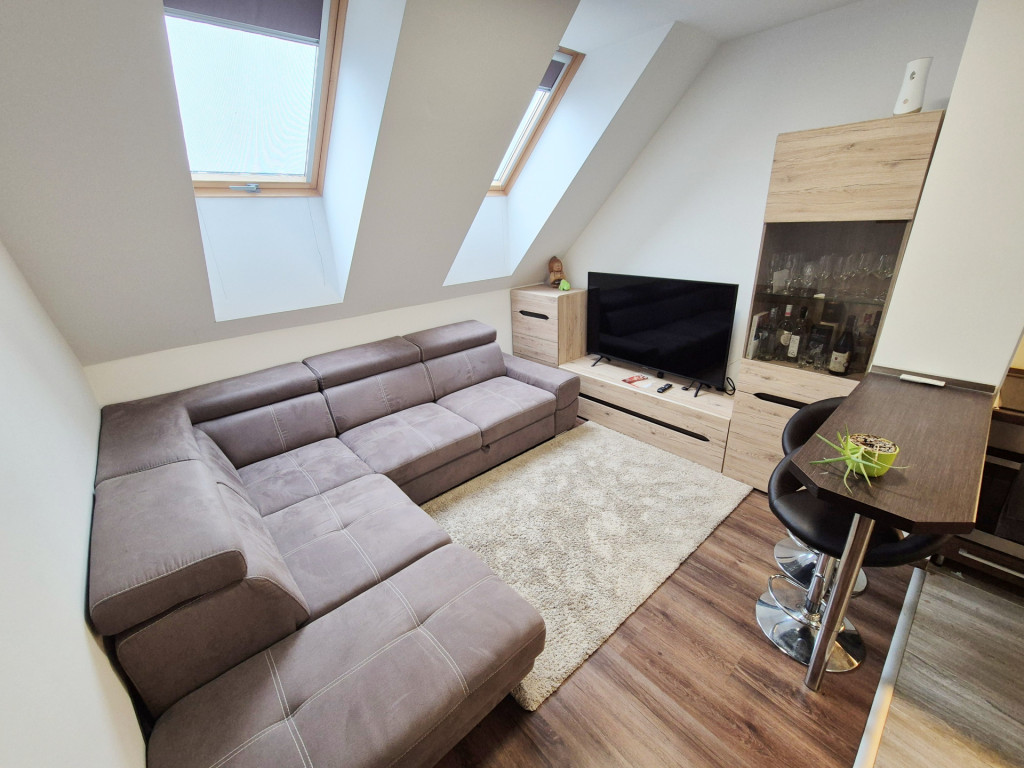 A tetőtéri ingatlan, bruttó 54,28 m² (nettó 48,41 m²) alapterületű, elrendezése praktikus és élhető: